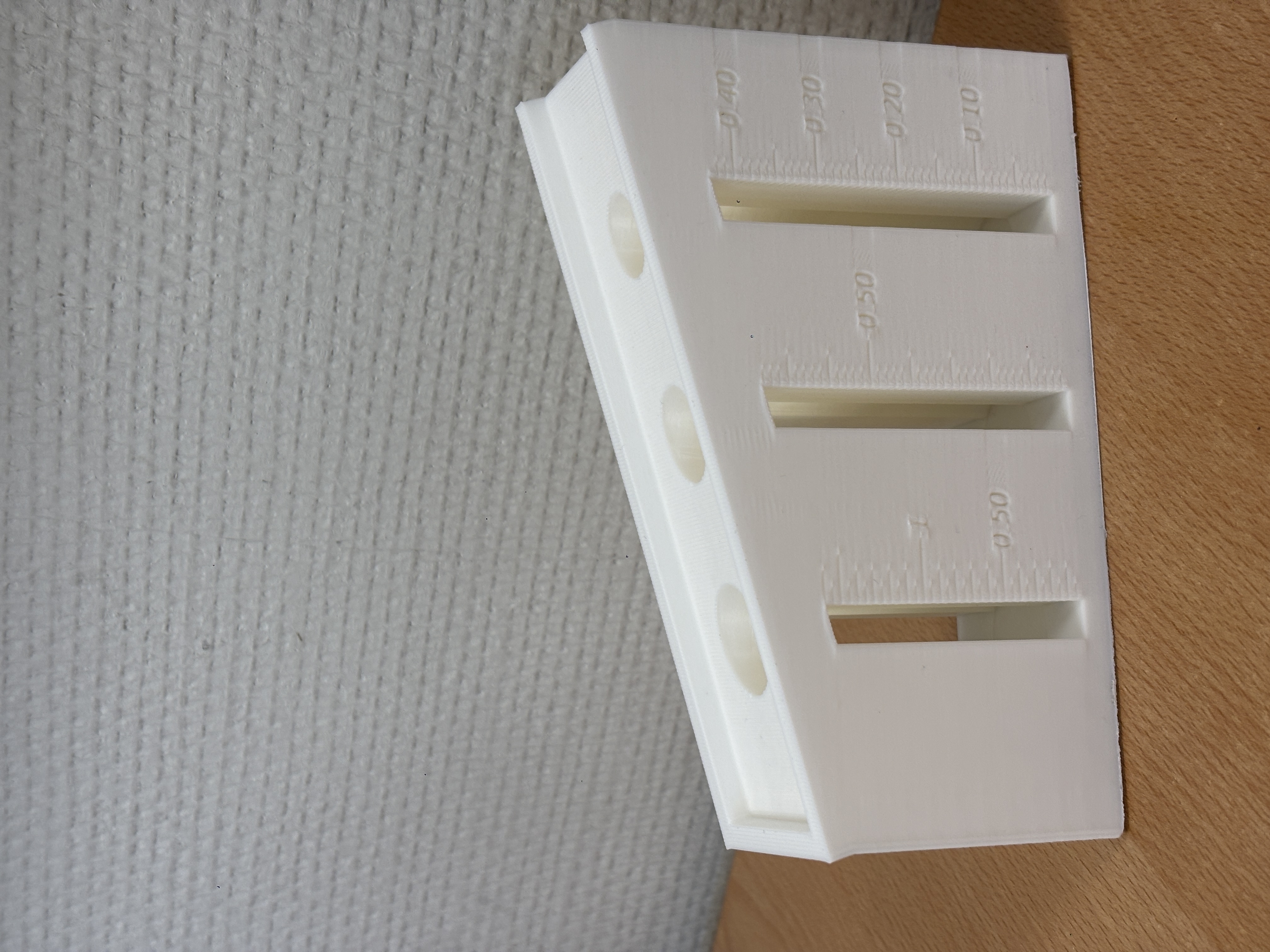 Quand il a fini d'imprimer, j'ai remarqué deux erreurs : les deux côtés étaient perforés donc si j'insérais les pièces lorsque je le soulevais, elles tomberaient en dessous, puis j'ai dû rétrécir les côtés car de cette façon les pièces sortiraient.