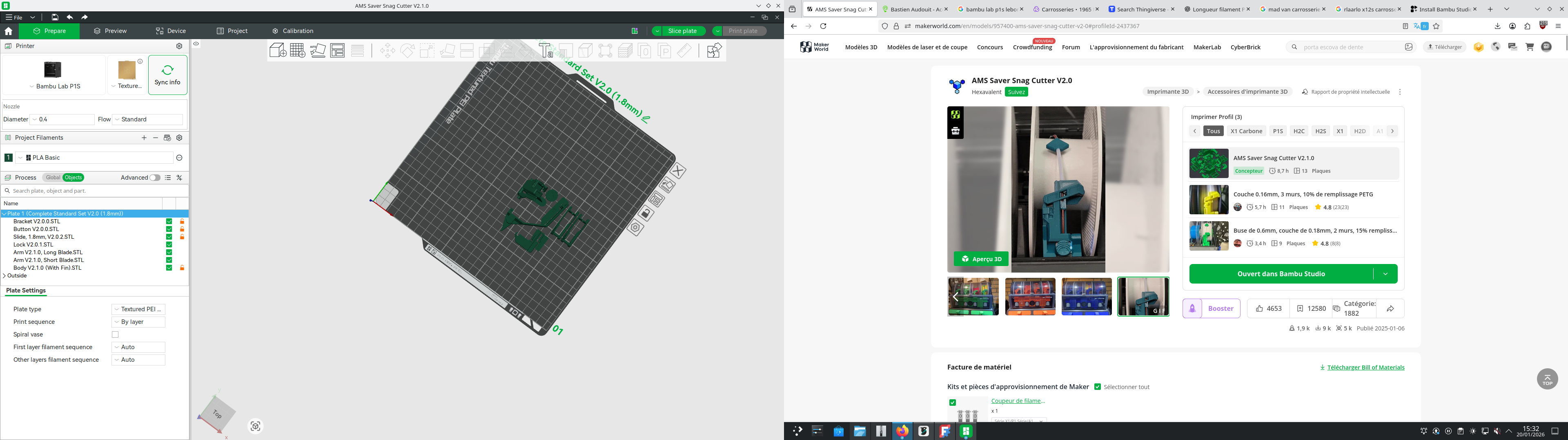 J-B m’a demandé d’imprimer un anti-blocage pour les imprimantes 3D. Cela a été un peu compliqué, car il y avait 45 dossiers pour seulement 8 pièces à imprimer.