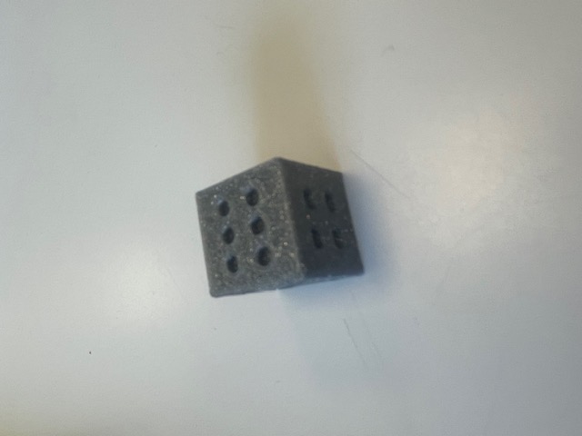 Voici le dé que j'ai réalisé en imprimante 3D lors de mes premières séances en AOP Tous Maker