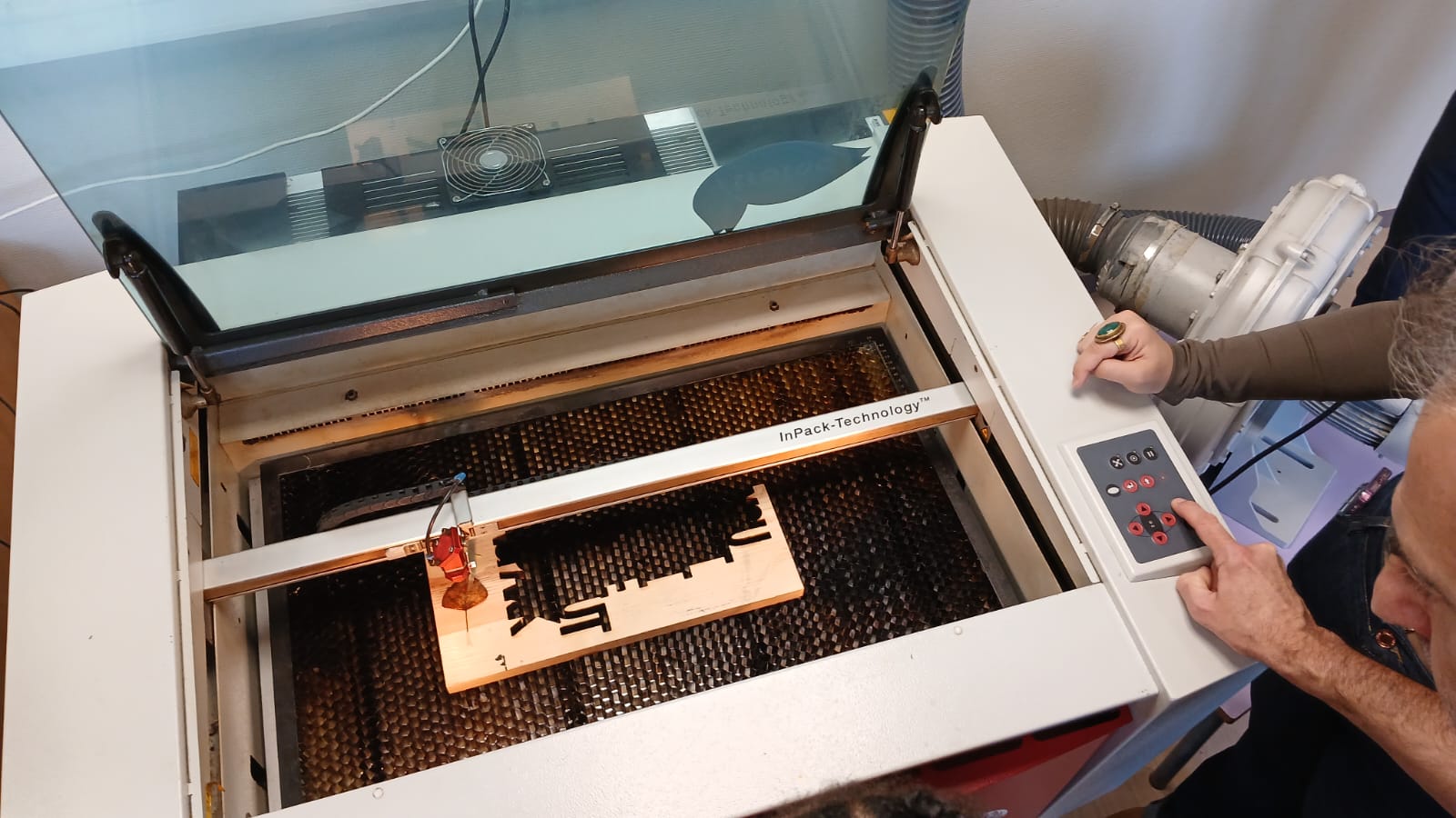 J'ai eu l'honneur après cette introduction et la présentation sommaire de JB d'expliquer le principe de fonctionnement de la nouvelle découpe laser ML-W1070, en insistant sur le focus et les boutons X/Y de sécurité. Mes collègues Léo Legal et Marcin Buczek présents également avons assisté les divers groupes. Nous avons aussi travaillé sur le TROTEC, qui était une grande découverte pour moi.