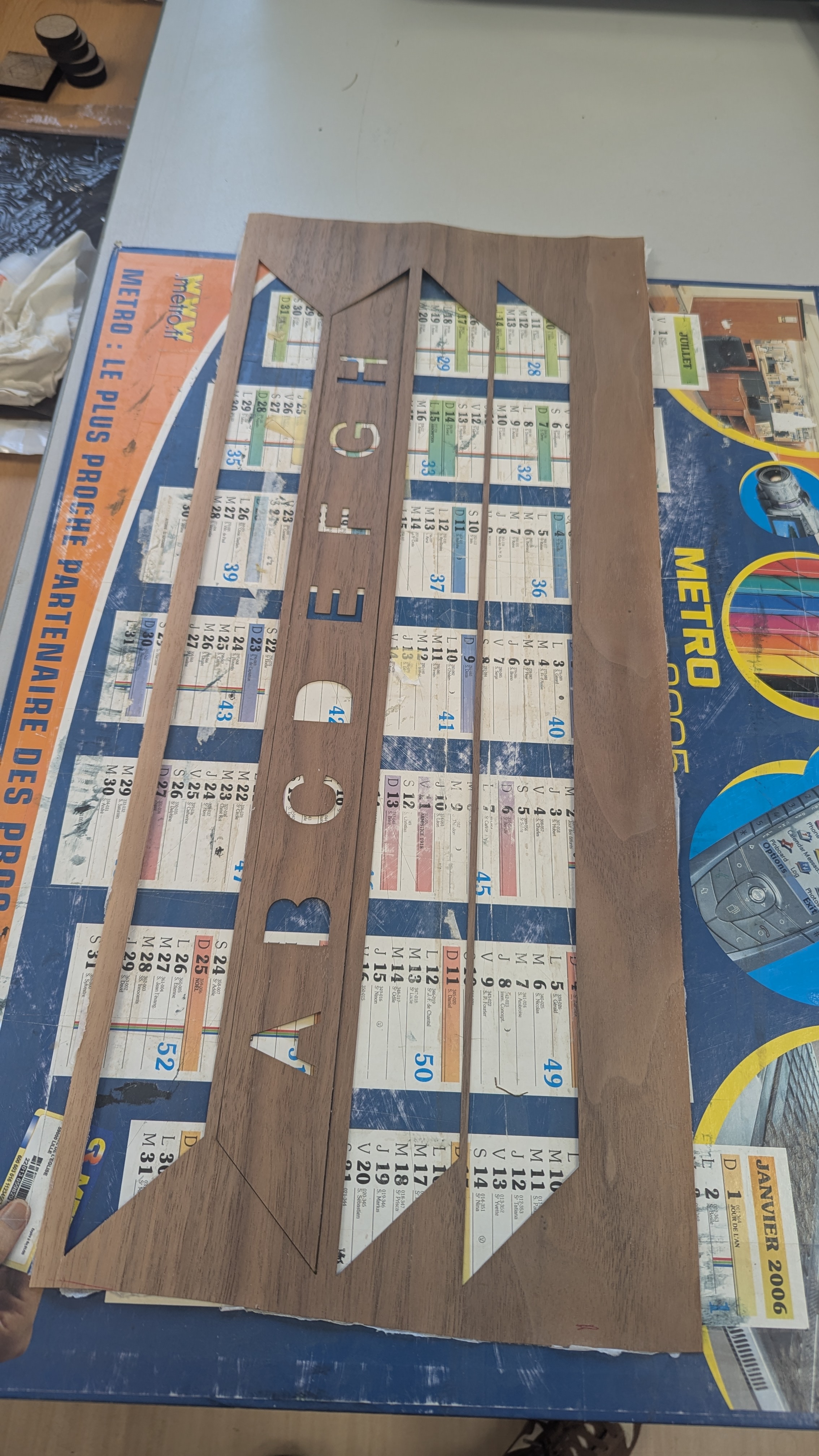 Bien placer les lettres dans le même sens du bois que les bordures lettre foncé dans le sens du bon bois