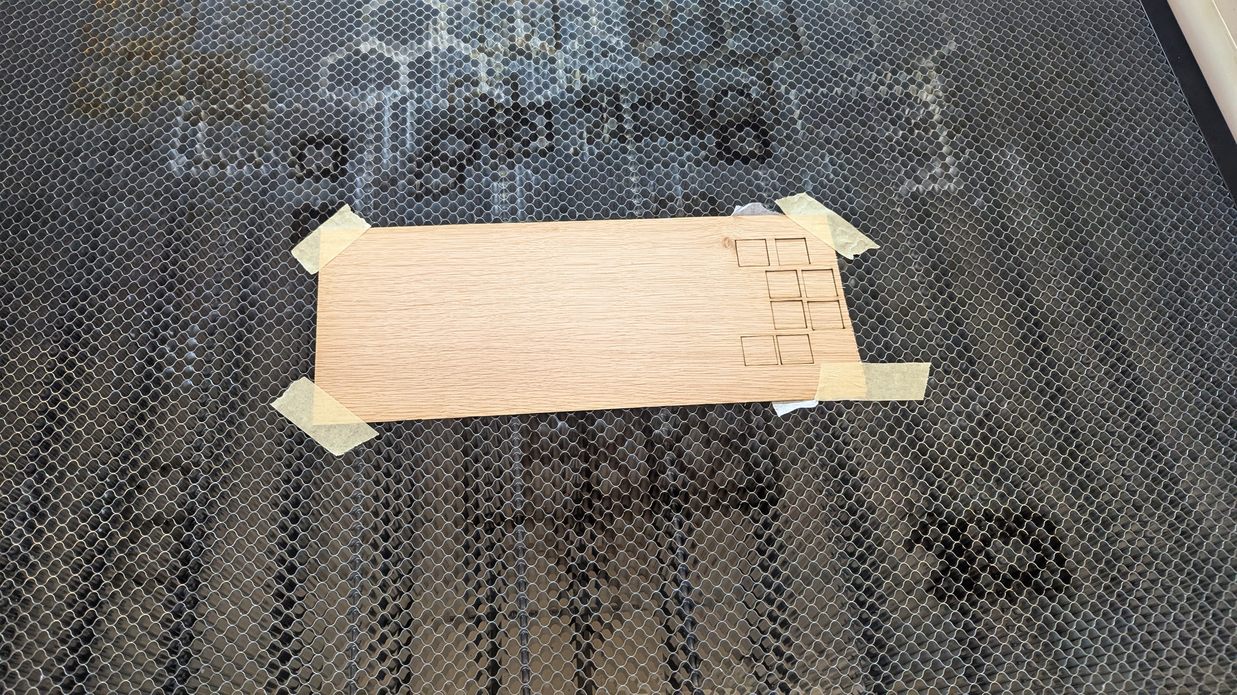 Se servir du quadrillage gravé pour aligner les carreaux et ne pas avoir un décalage à la fin (ils sont légèrement plus petits que prévu dû à la précision de la découpe laser).