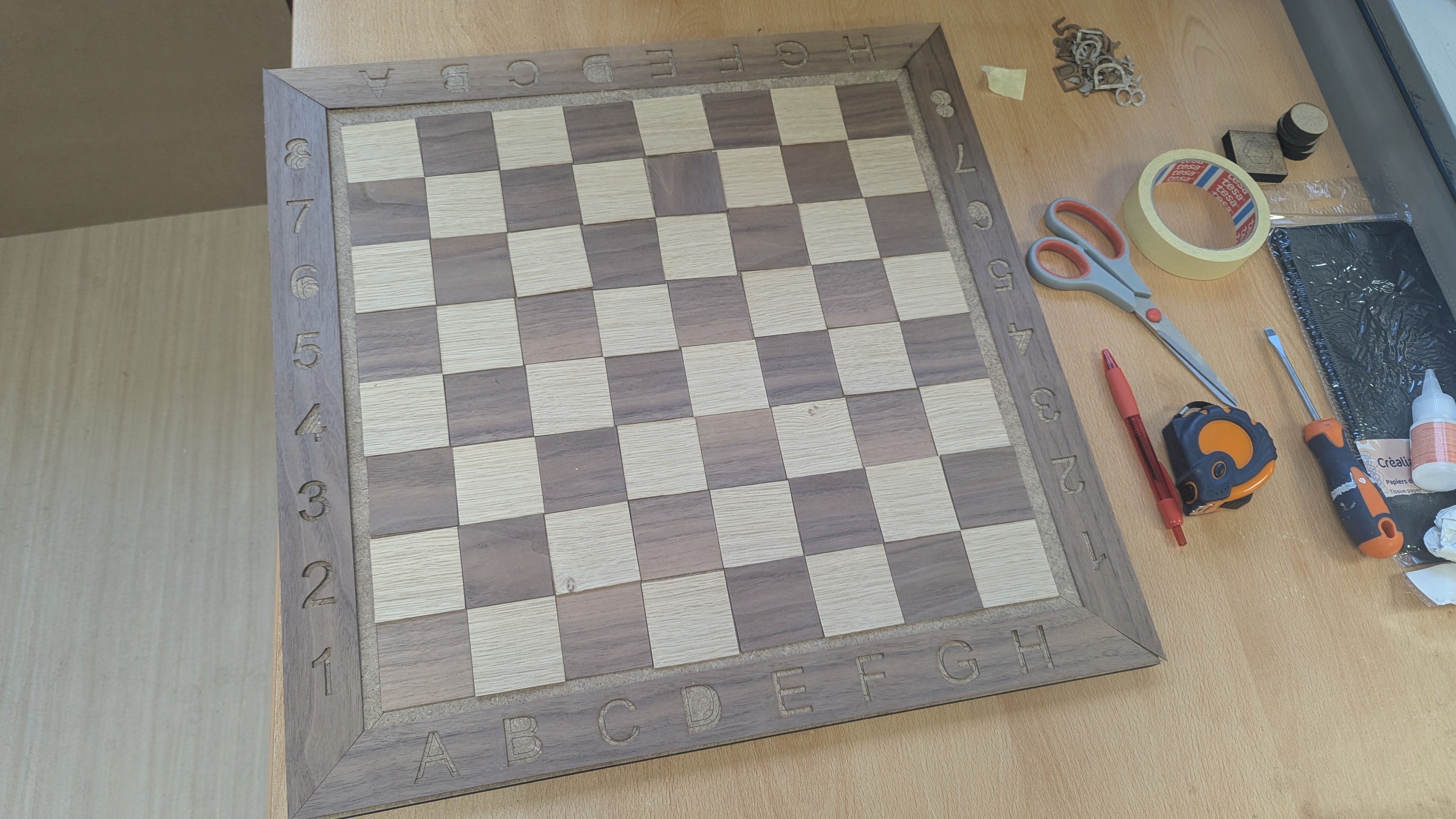 Merci à Léo Legal et Marcin Buczek, deux stagiaires en médiation numérique qui m'ont aidé à la gravure / découpe de mon plateau de jeu.