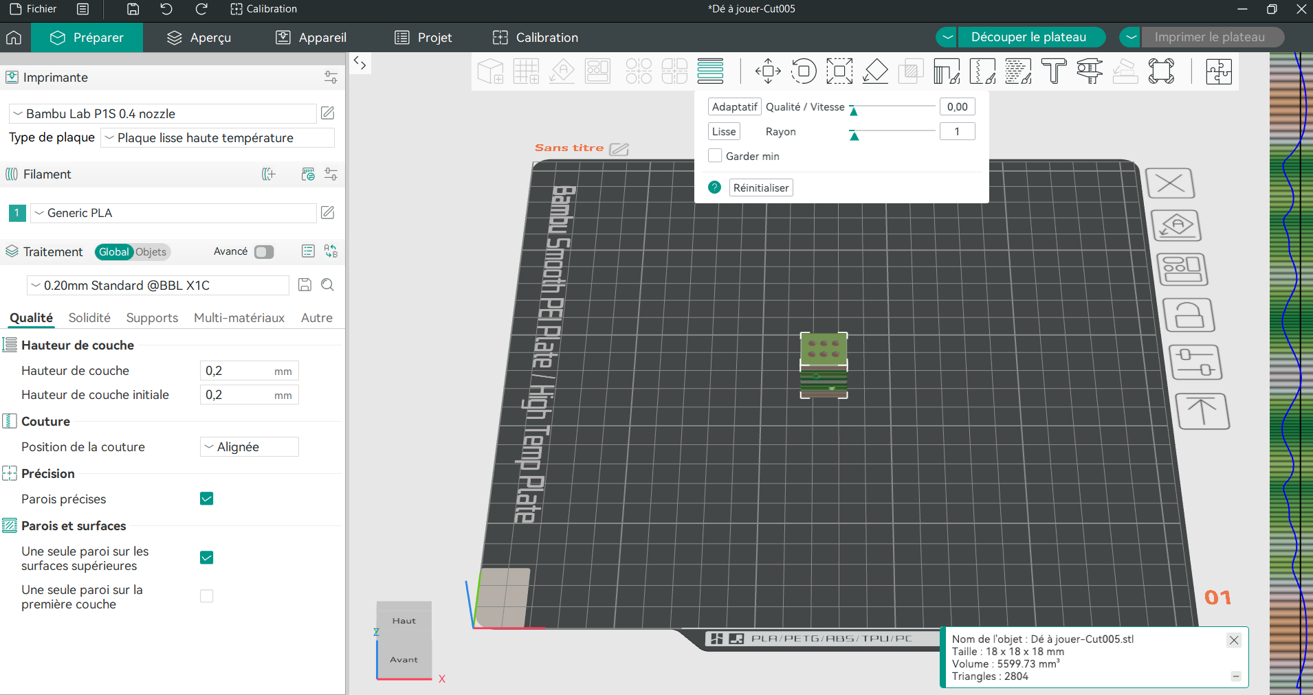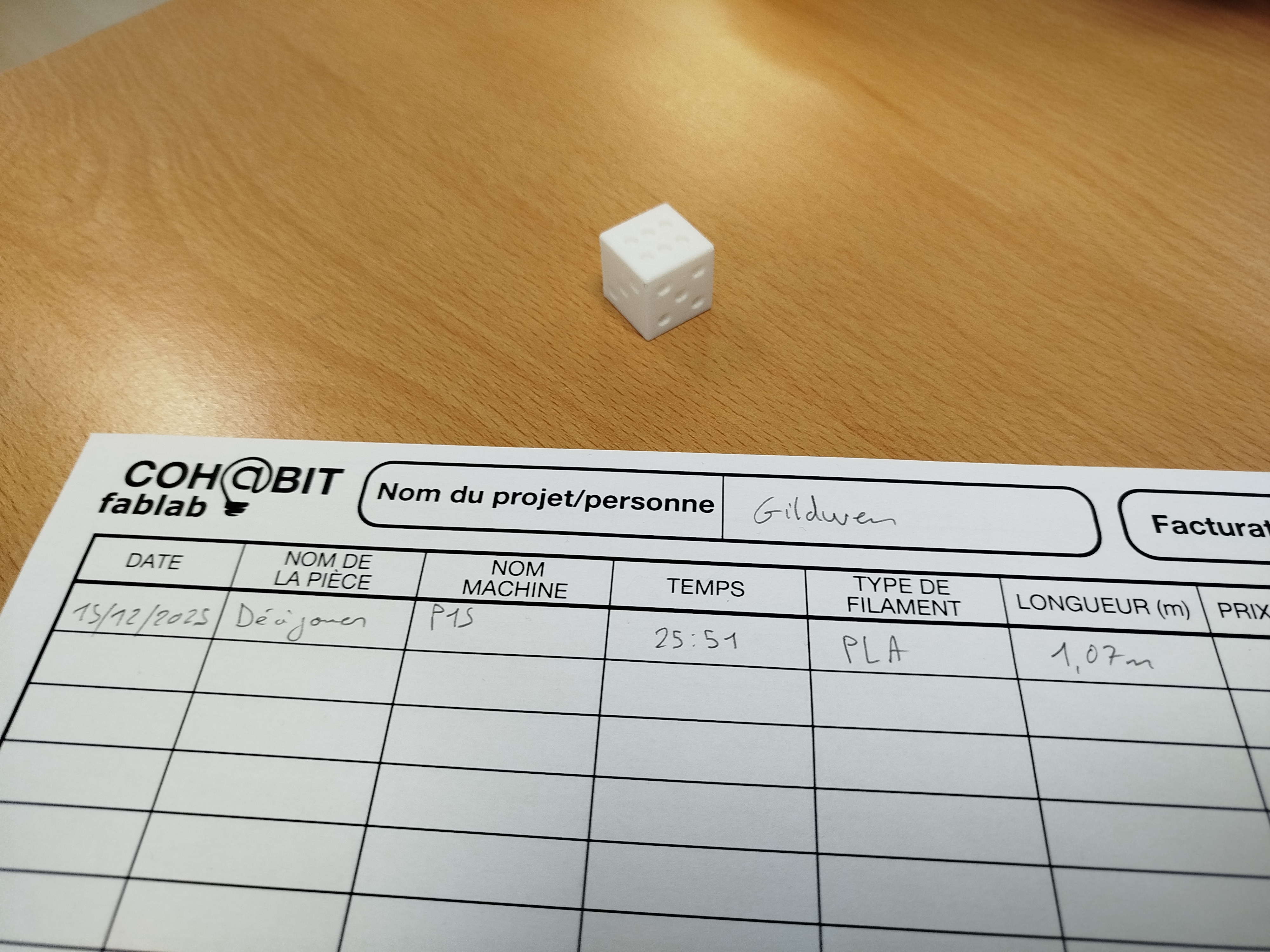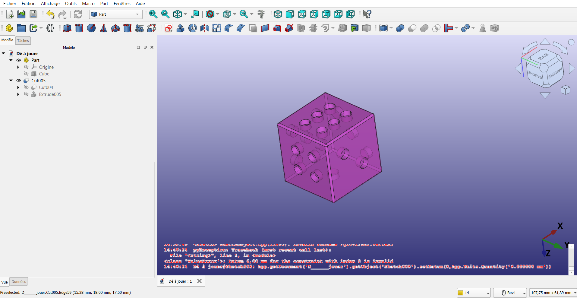 Réalisation du Dé à jouer sur freecad à partir du tutoriel.