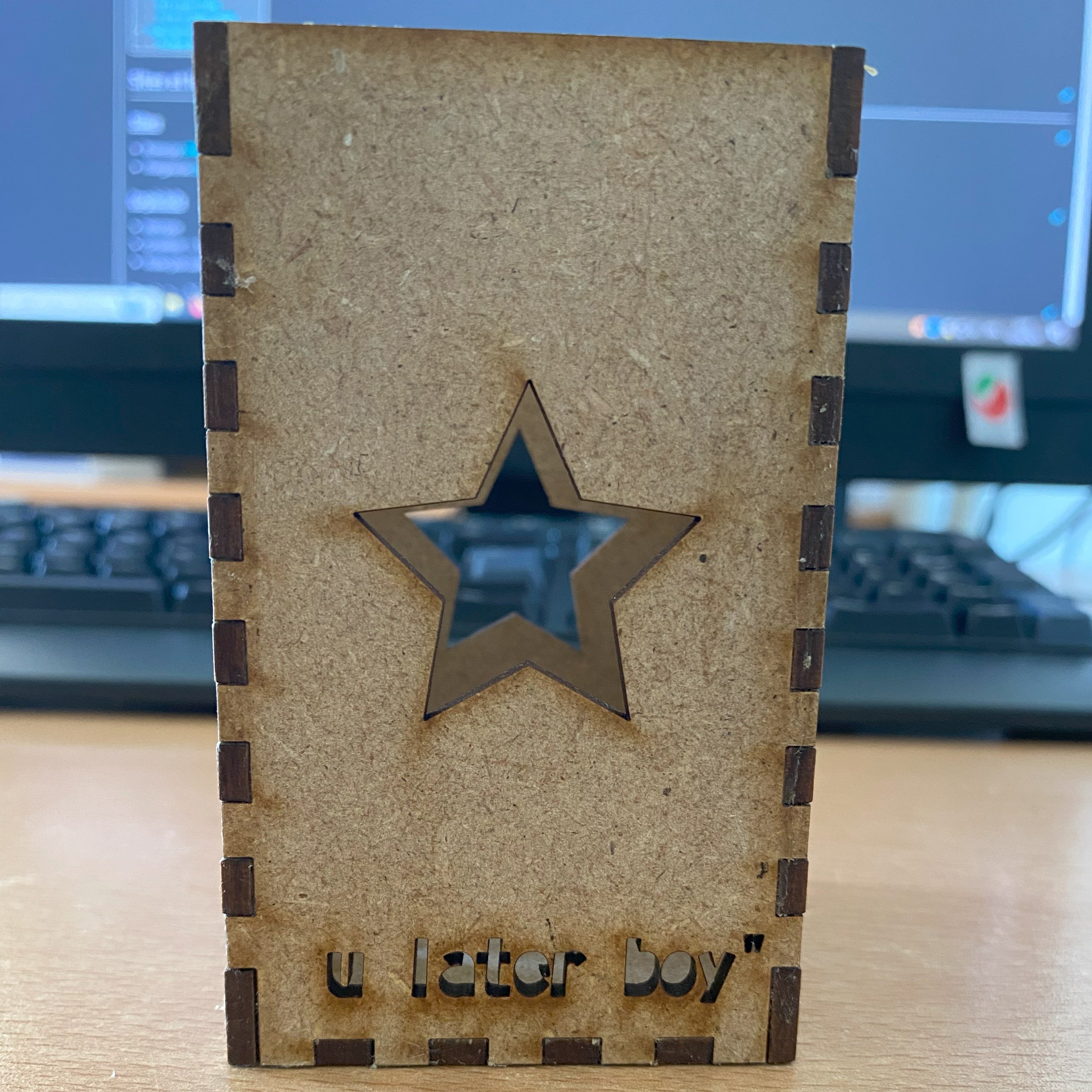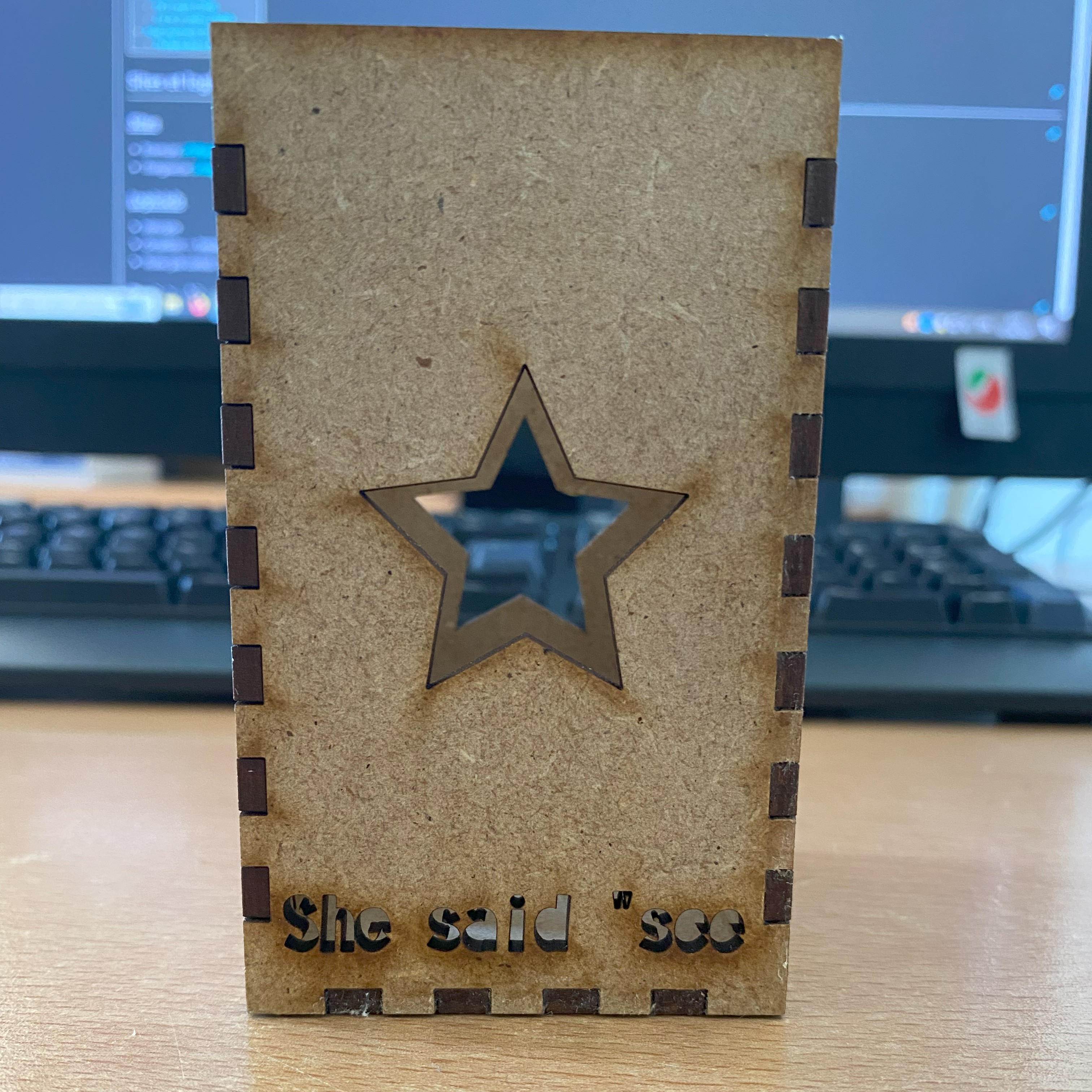 Enfin, le logiciel Trotec job control nous a permis d'envoyer le design du pot à crayon sur la découpe laser et ainsi permettre sa création physique.
