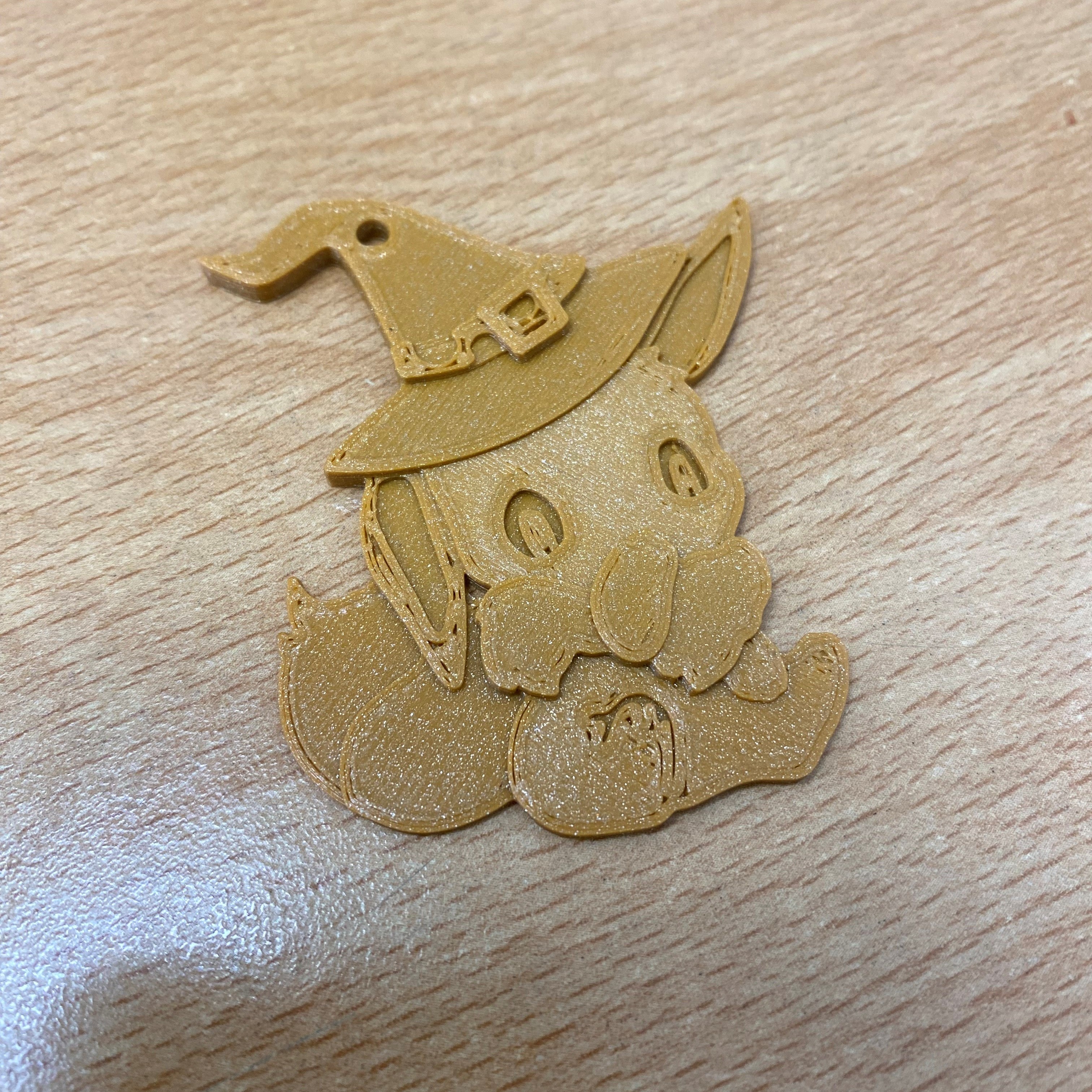 (14/10) A partir du site thingiverse, téléchargement d'un fichier permettant d'imprimer un porte-clé d'Evoli portant un chapeau de sorcière.