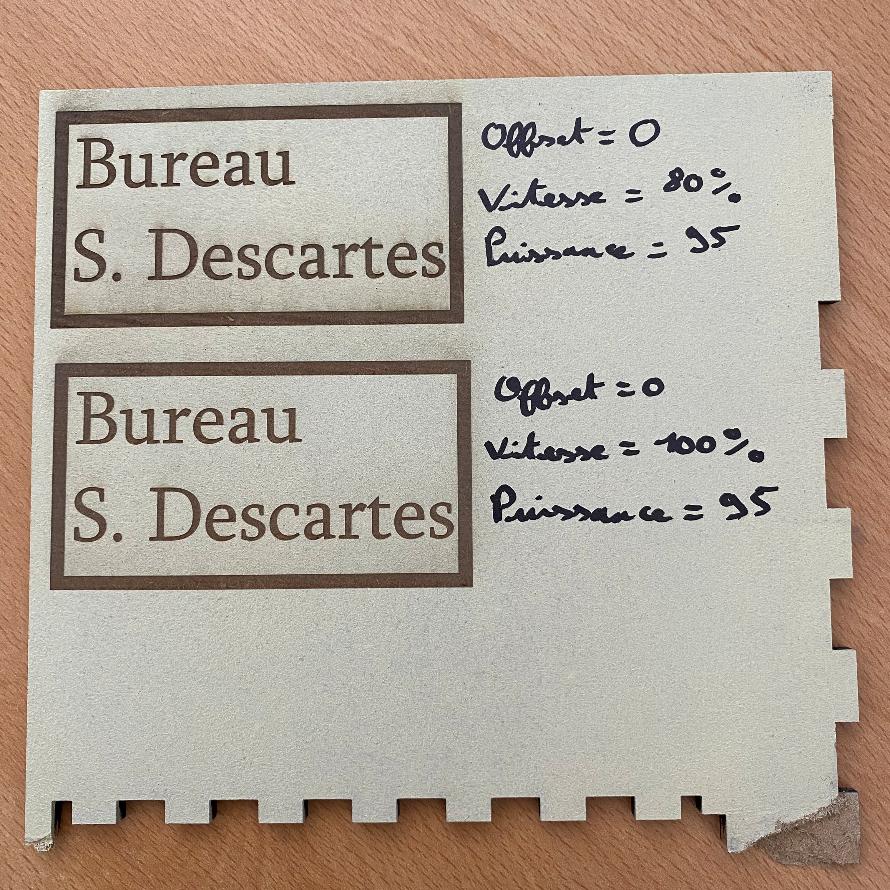 (Photo des 2 essais réalisés. Le premier se situe en haut. Fichier de découpe: EssaiMaquette.svg)