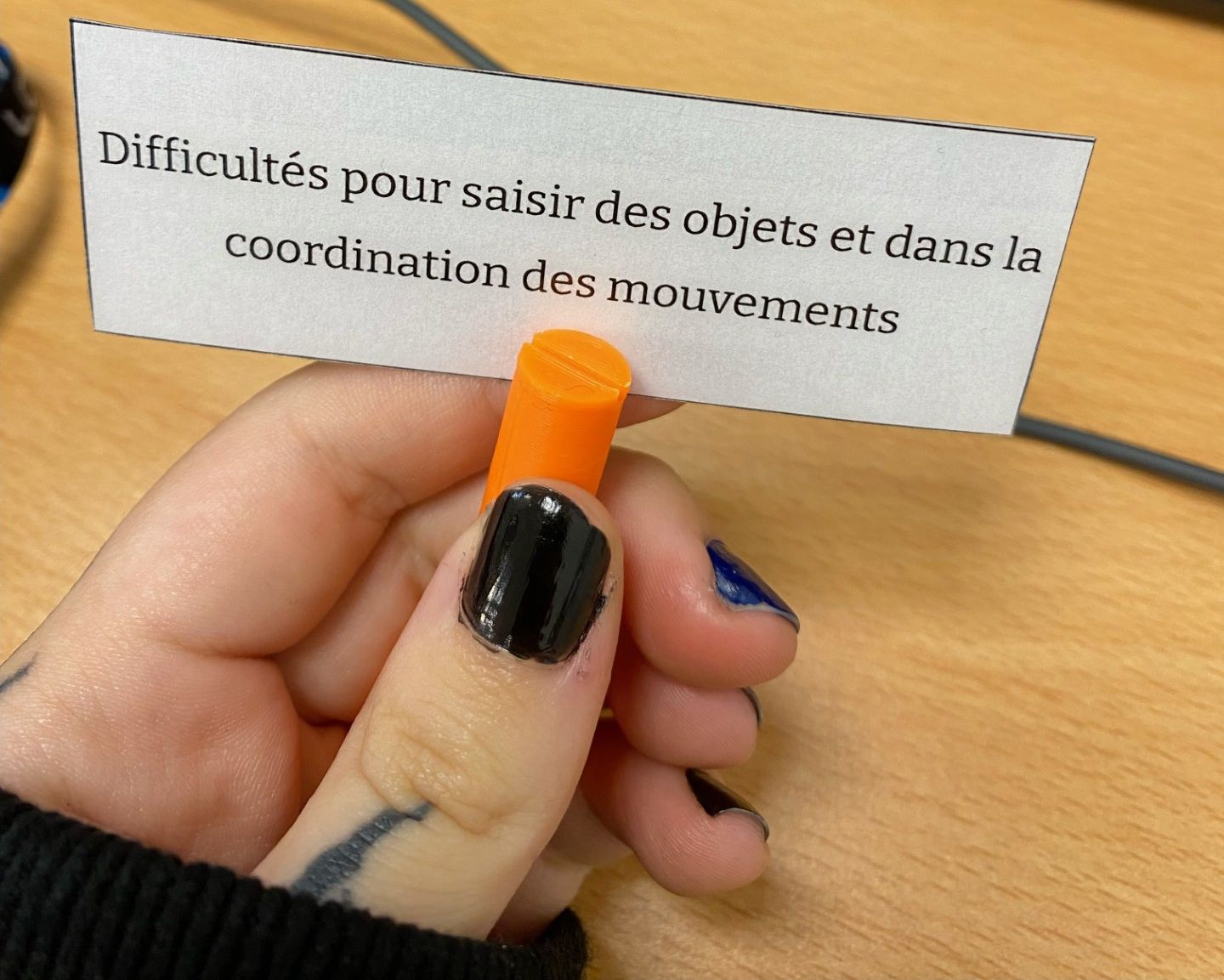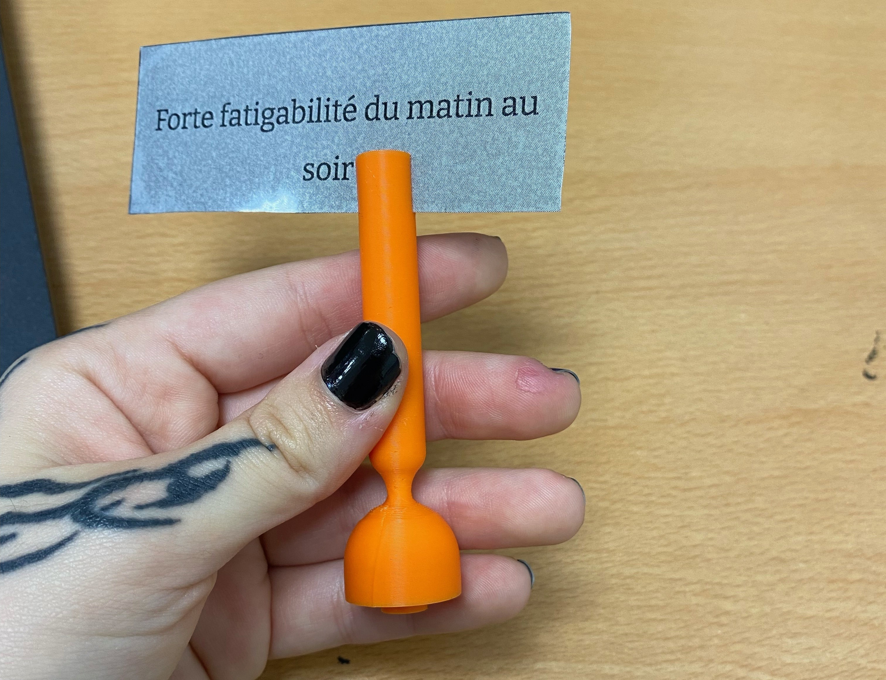 (12/11) Modélisation et impression de pions avec fentes pour la maquette de l'Incluedo. Ces pions permettent d'avoir une double fonction (à la fois celle de pion mais aussi celle de porte-drapeau) et cela permet ainsi de réduire le nombre d'éléments sur le plateau de jeu.