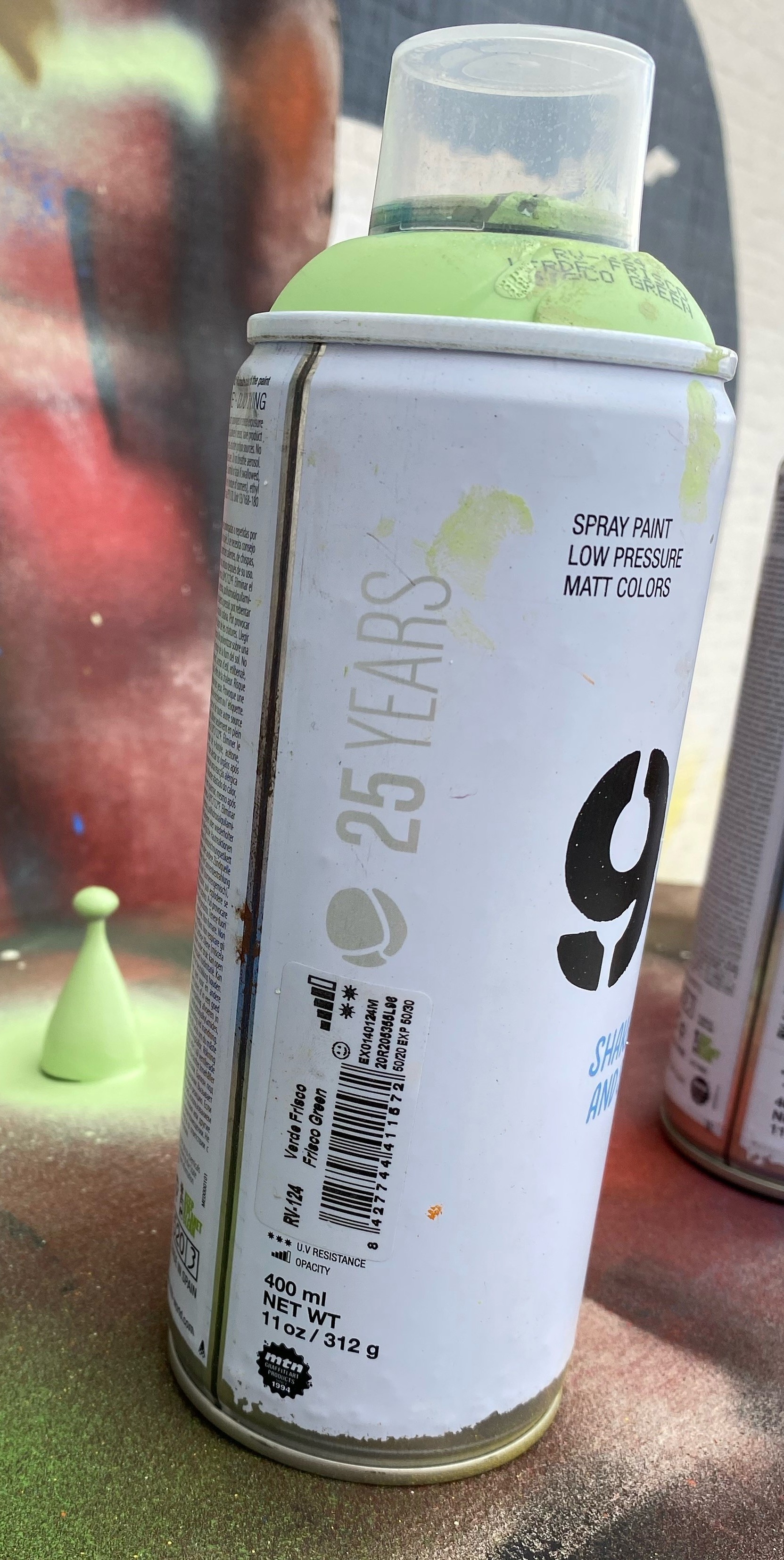 (Photo du pion peint avec la bombe de peinture qui a servi, référence peinture: MTN 94 - Vert Frisco (Frisco Green) - RV - 124)