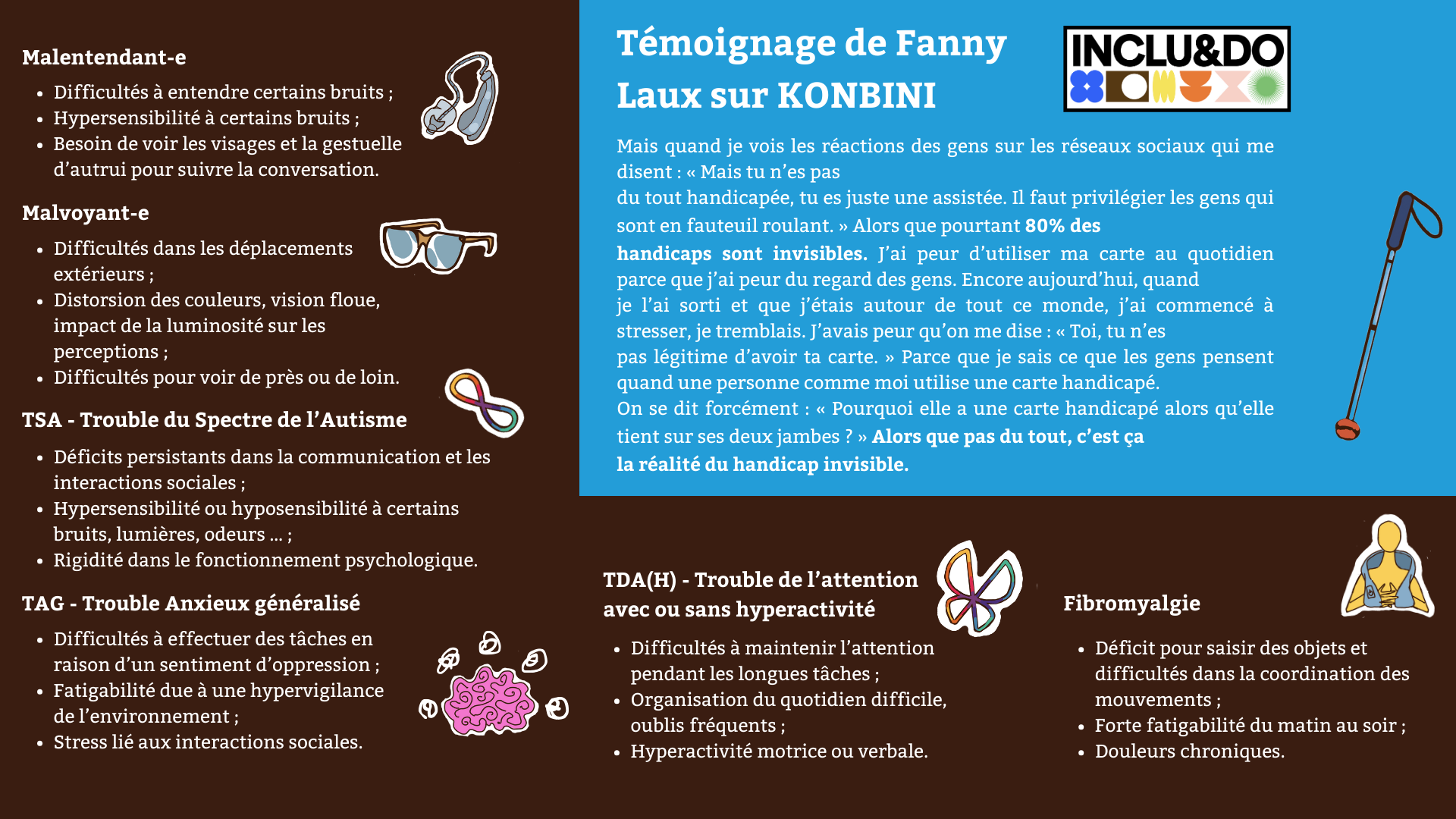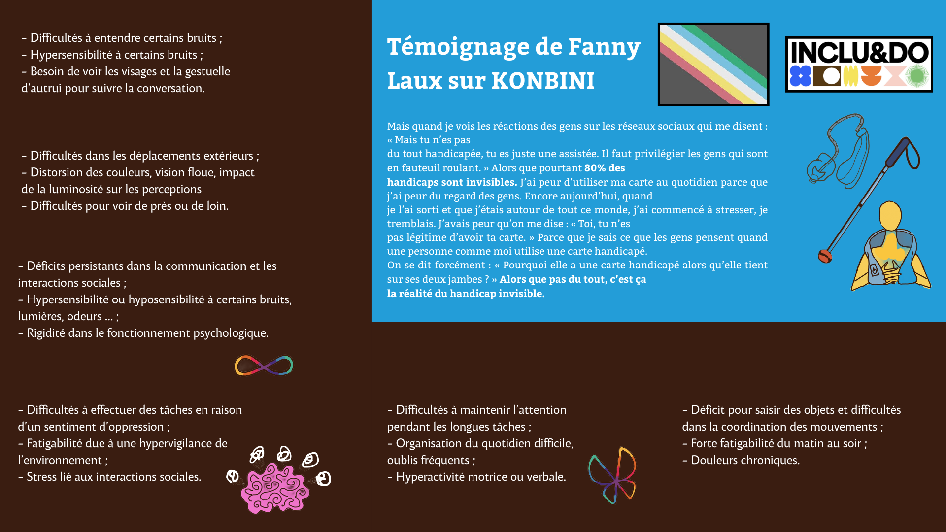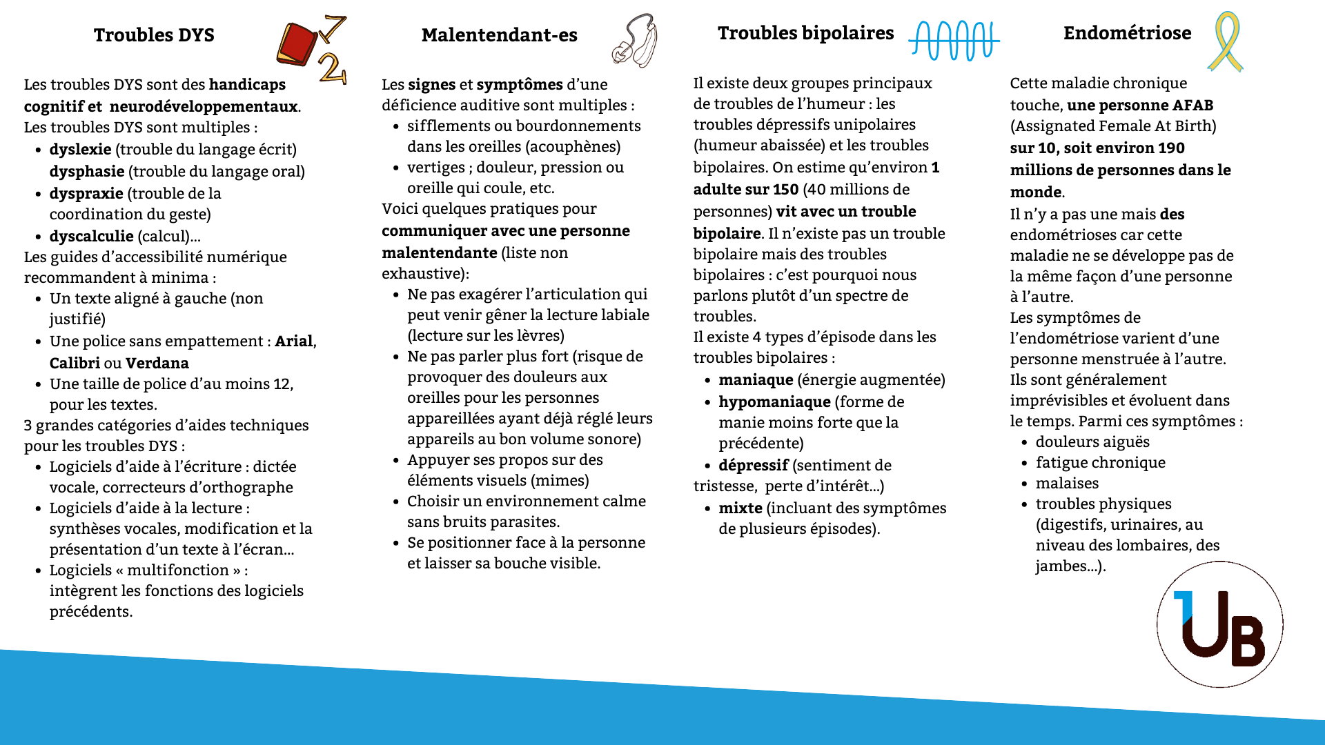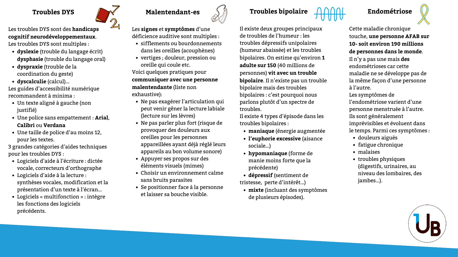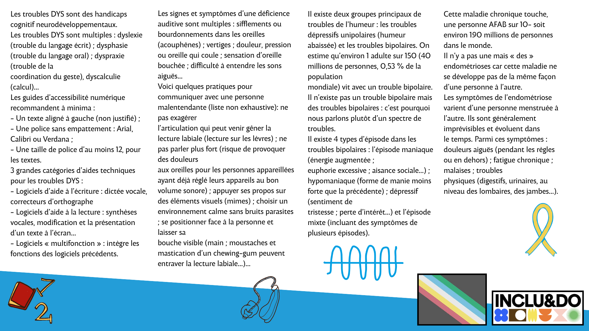- Après un échange par mail avec Jeanne, elle m'a transféré davantage d'exemples à suivre pour les plaquettes ainsi que l'indication de faire des fonds clairs pour les plaquettes explicatives des handicaps.
