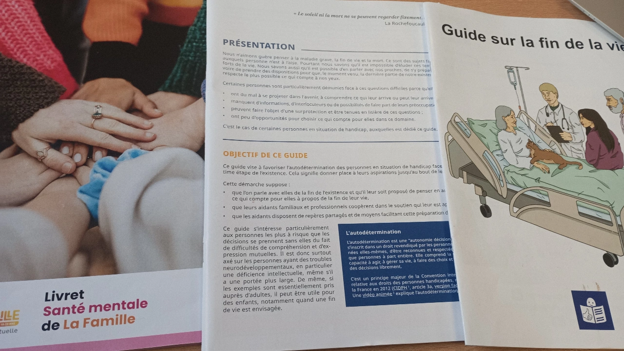 Je vais donc organiser les pages en fonction du jeu sur lequel je travaille (digital et présentiel) et des handicaps qui sont abordés. Pour se faire, je vais utiliser Inkscape pour le formatage et la continuité des pages. Eric m'a laissé trois carnets d'exemples à suivre pour m'en inspirer, les trois portants sur la fin de vie.