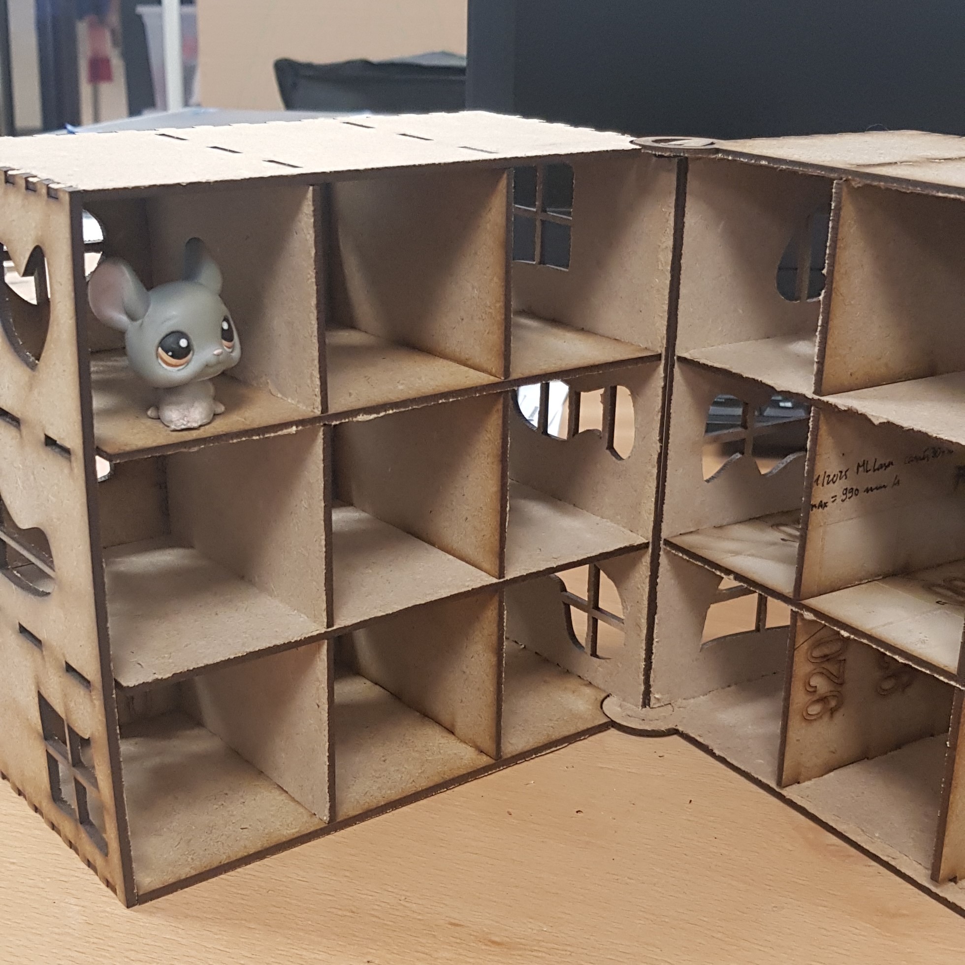 je reprend mon travail sur la maison petshop, je pense que je vais réaliser la structure en bois avec la découpe laser