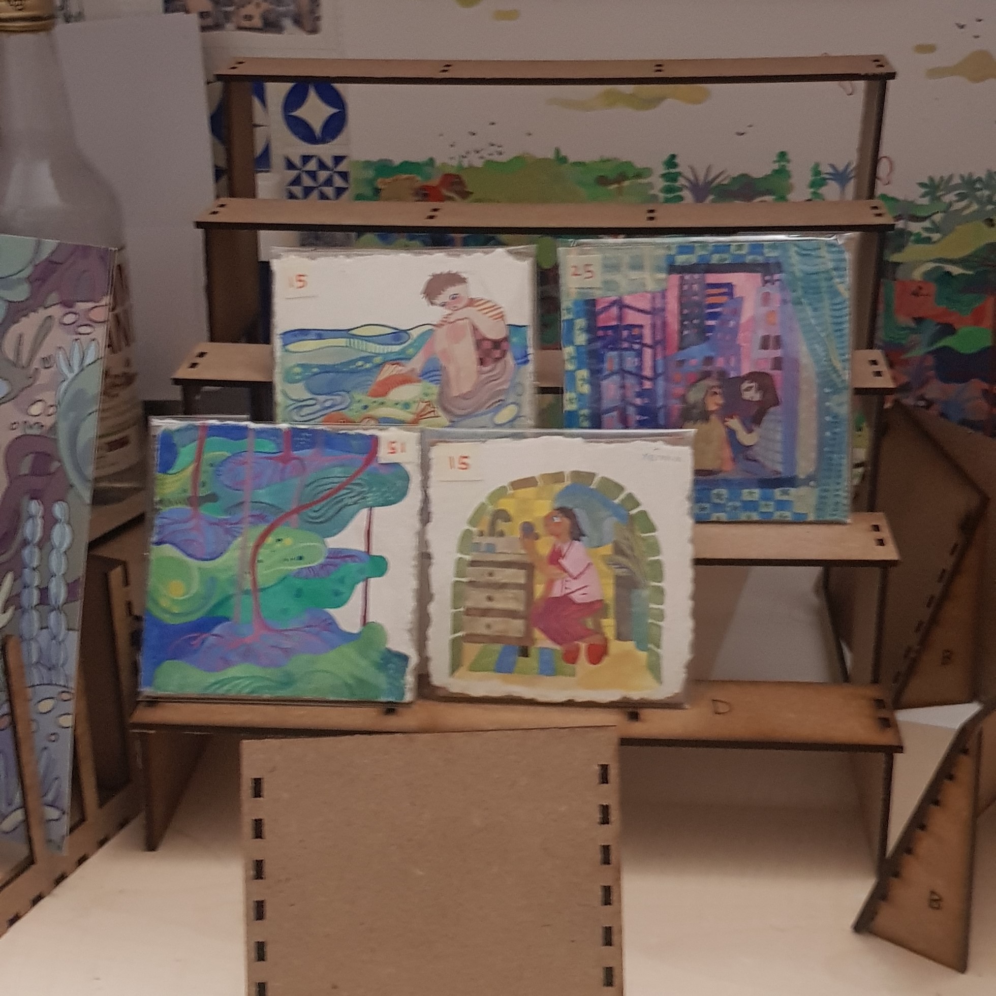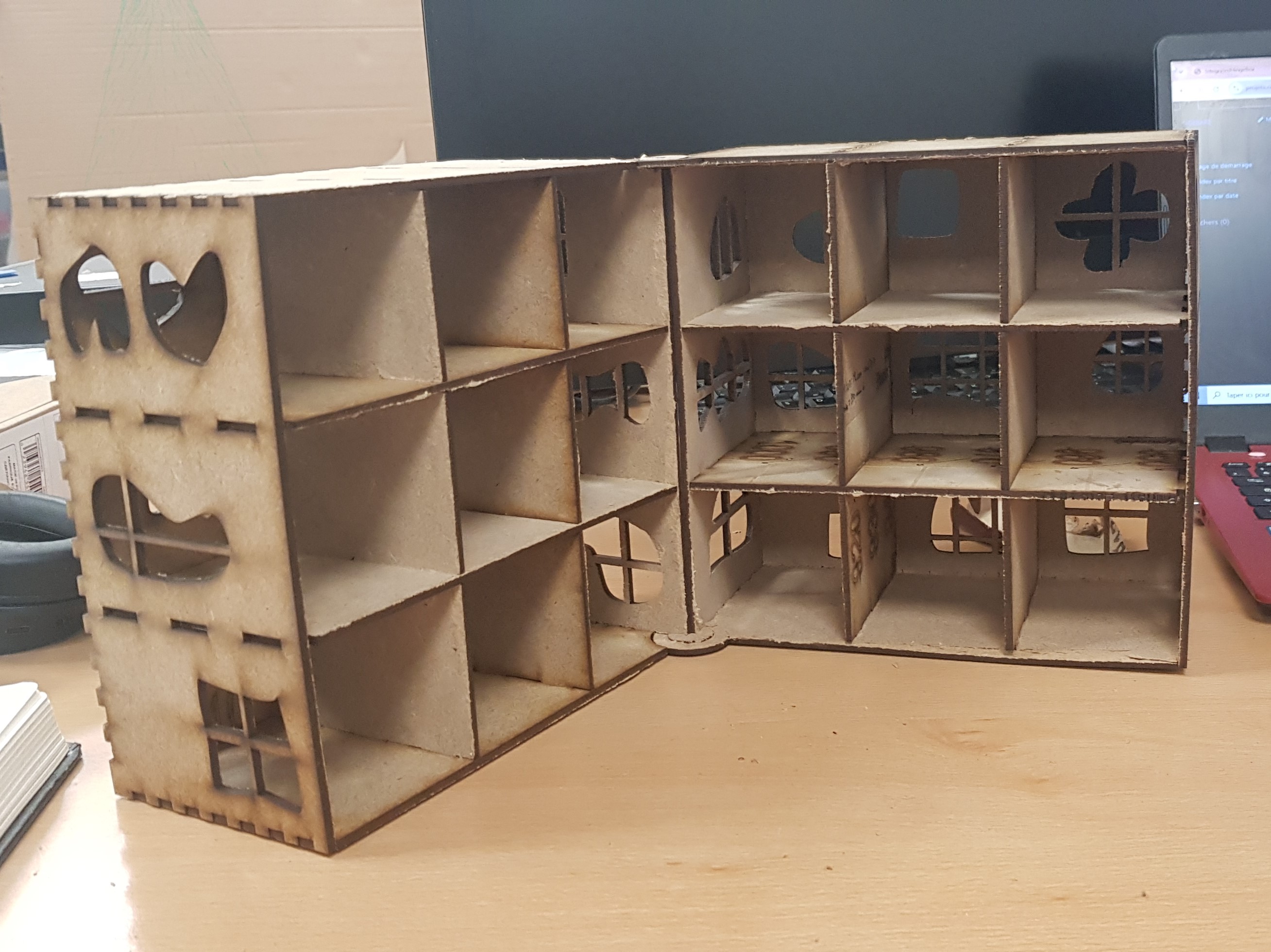 fichier de découpe pur les module d'exposition, le but c'est de crée des petit module qui permette d'exposer des création pour des marché ou ce genre de chose ici il y a 5 types de module différents en plusieurs exemplaire