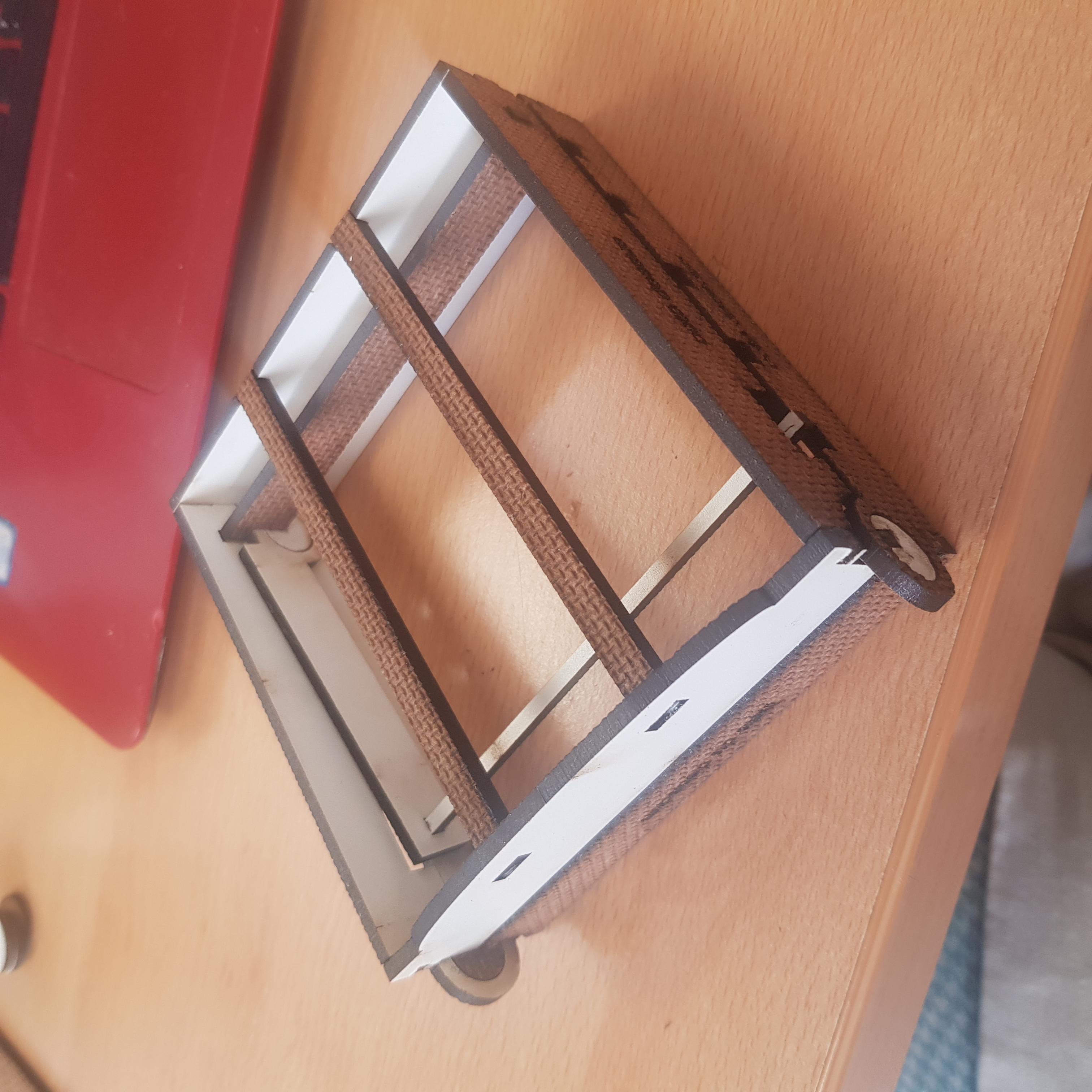 je suis aller retester la grande découpeuse laser pour vérifier qu'elle ne bruler pas, puis j'ai pu découper la dernière version de mon prototype de planche incliné à dessin. la découpe s'est très bien passé et l'assemblage également.