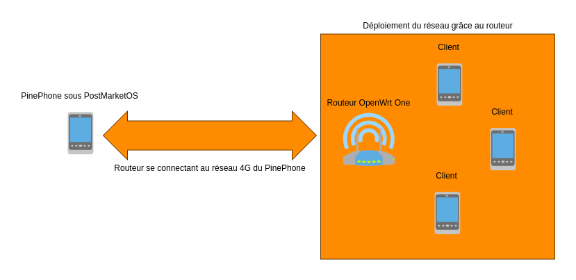 Crée un hotspot via le routeur qui prend le relai: