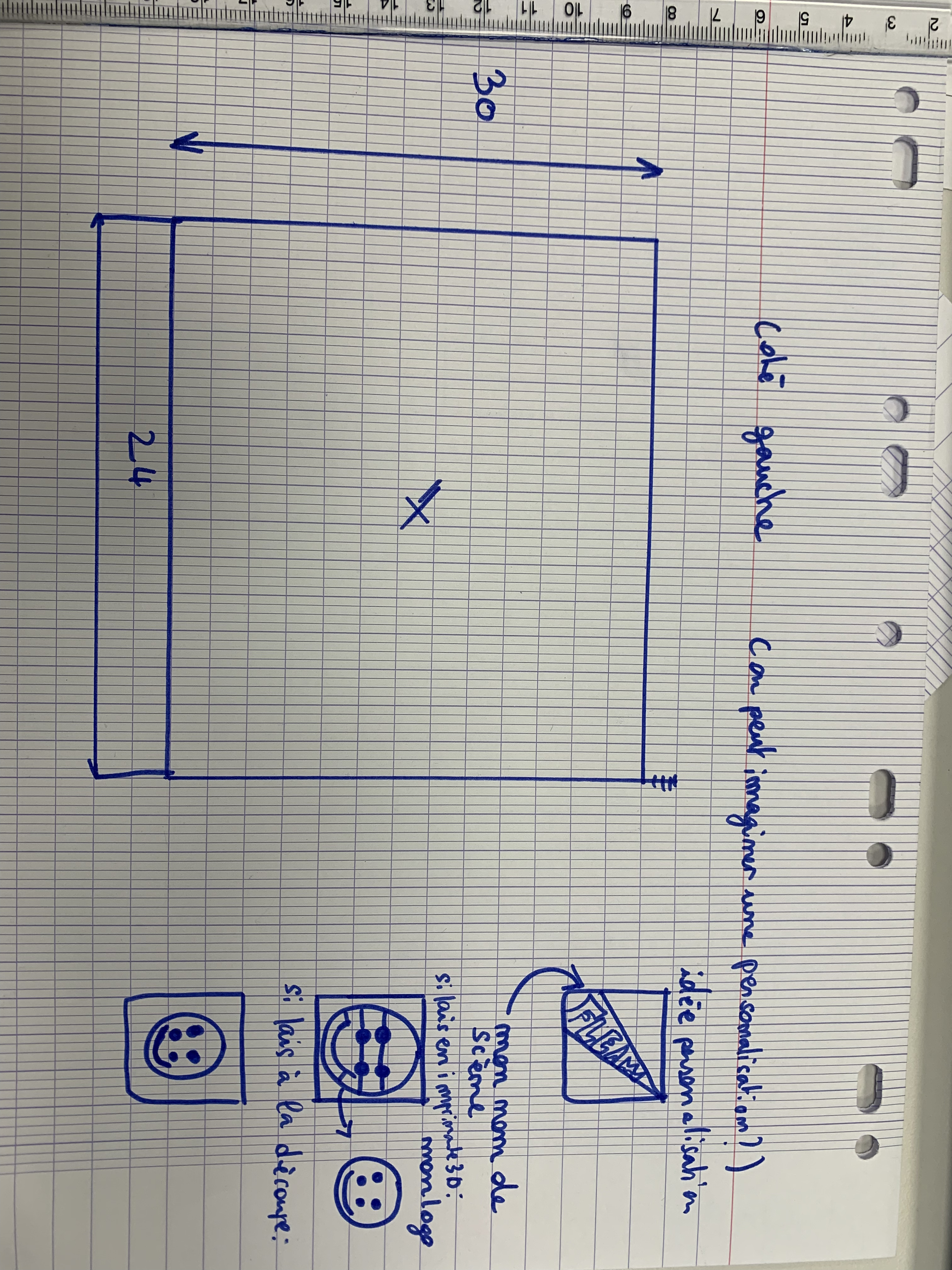 idée de personalisation : j'ai alors la face gauche qui posséde un gros potentiel dans la personalisation , je pense alors incrusté ce smiley qui se rapporte a mon univers :
