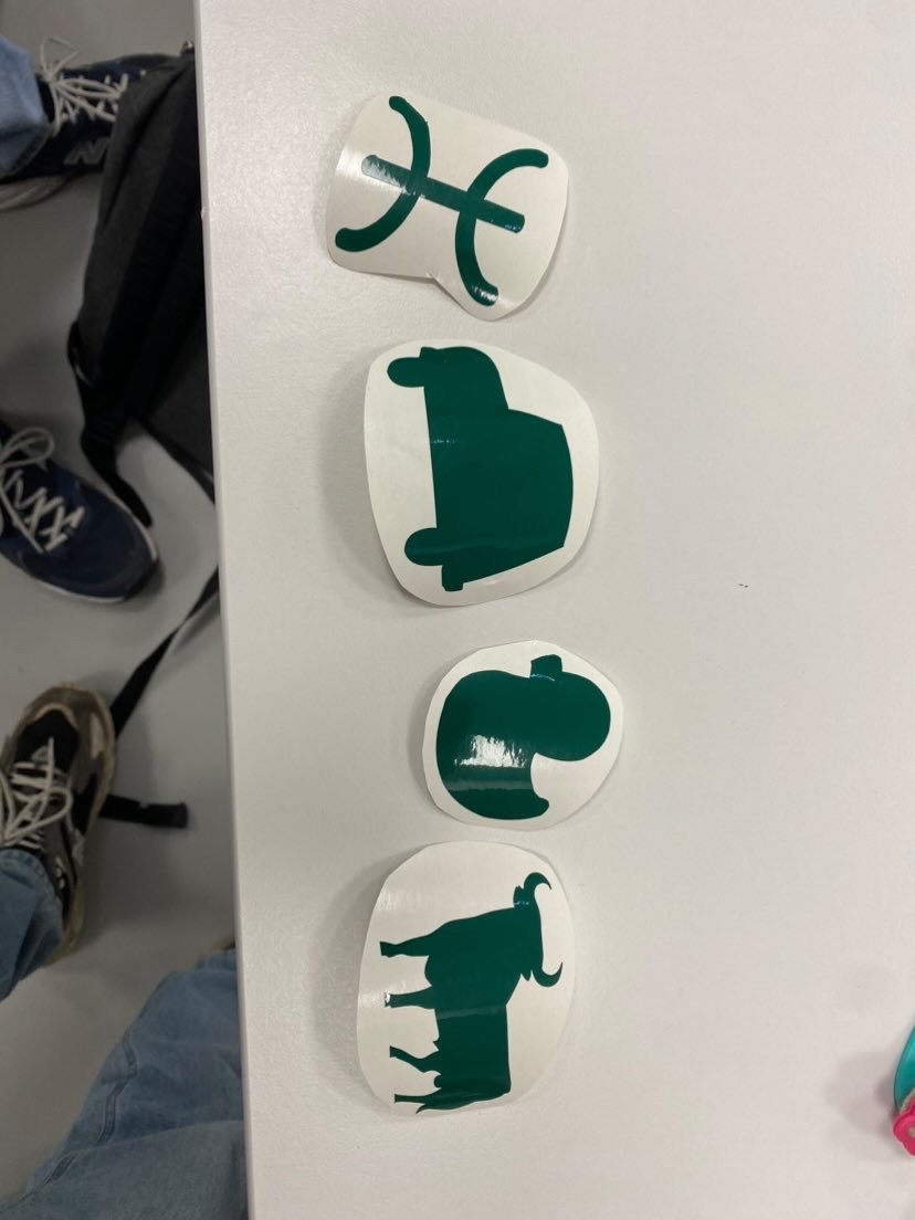 La réalisations des autocollants a permis à chacun de choisir une forme différente, Killian à choisi un taureau en rapport avec sa passion des courses landaises, Darris a choisi la croix Kabyle en référence à ses origines, Alexis à choisi une 4L car il a pour projet de participer au 4L Trophy et Thomas à choisi un logo canard car il trouvait simplement cela marrant. Une fois les logos choisi nous avons demandé à Inkscape de nous vectoriser chaque logos mais le résultat n'était pas très bon. On a donc du tout reprendre à la main et tout vectoriser nous même. Le seul logo qui était bien vectorisé dès le début était le taureau de Killian. Lors de la découpe des autocollants, nous avons rencontré un problème, les logos étaient trop petits. Notre problème venait de la dimension sur Inkscape, en effet nous avions dimensionné les logos en pixel et non en mm. Ils faisaient donc 70x50 pixels ce qui est tout petit. Après redimensionnement, ils seront parfait dans notre sapin.