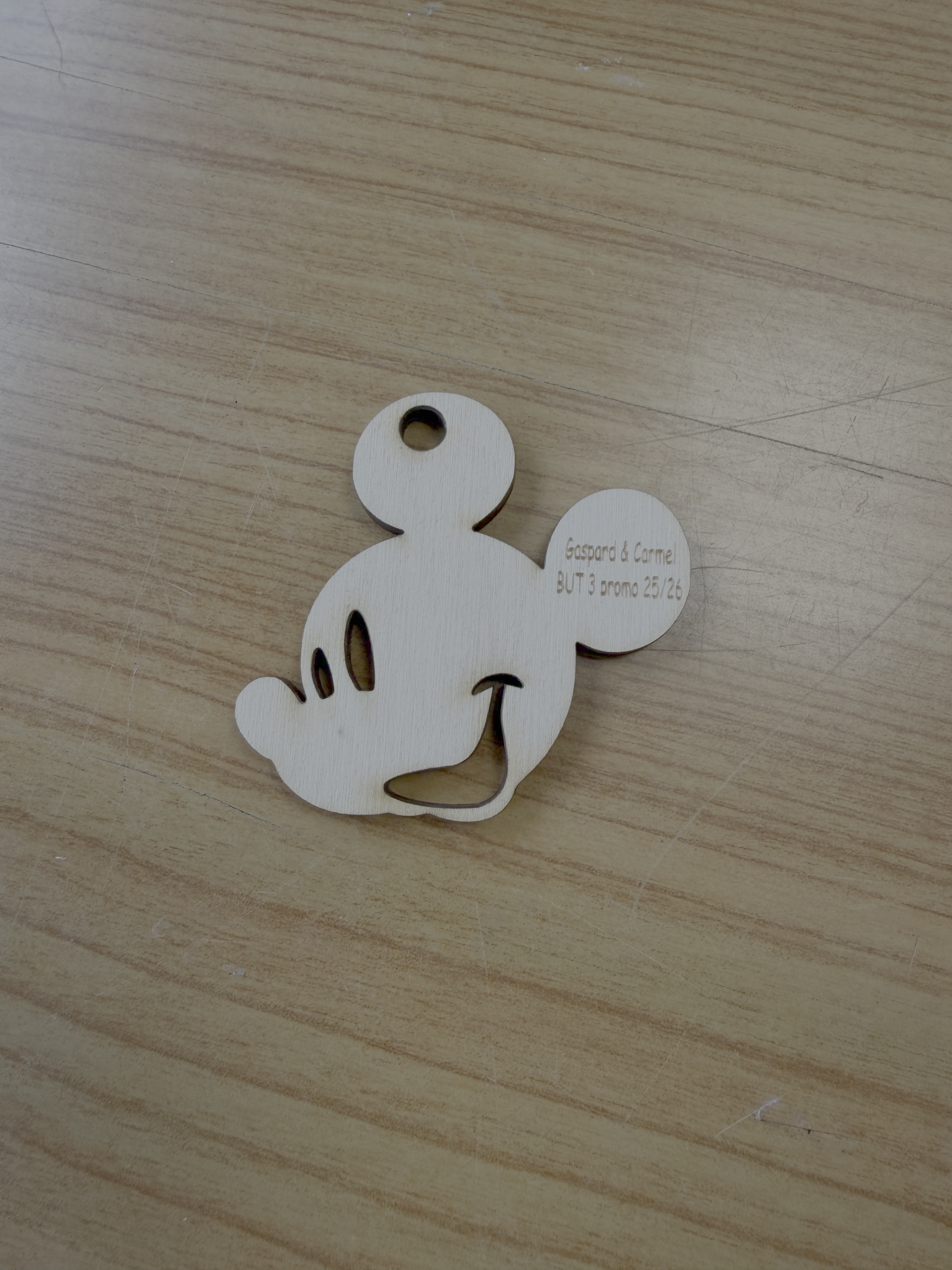 Le porte-clé intègre également le texte suivant : « Gaspard et Carmel BUT 3/Promo 2025-2026 ».