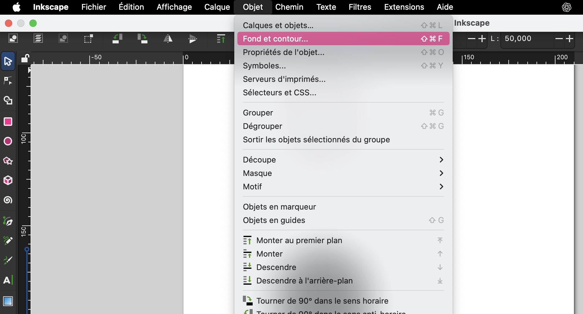 Après cela, nous avons ouvert le menu « Objet », puis « Fond et contour » afin de modifier l’apparence du cercle :