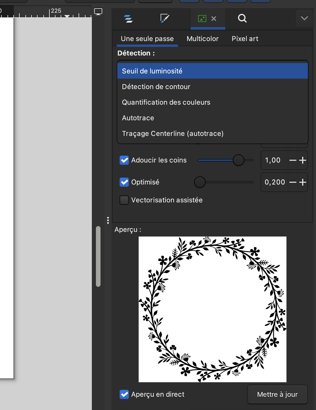 Cette opération a transformé l’image en tracés vectoriels exploitables par la machine. Une copie de l’image vectorisée a été créée par le logiciel ; nous avons donc supprimé l’image d’origine et conservé uniquement la version vectorisée.