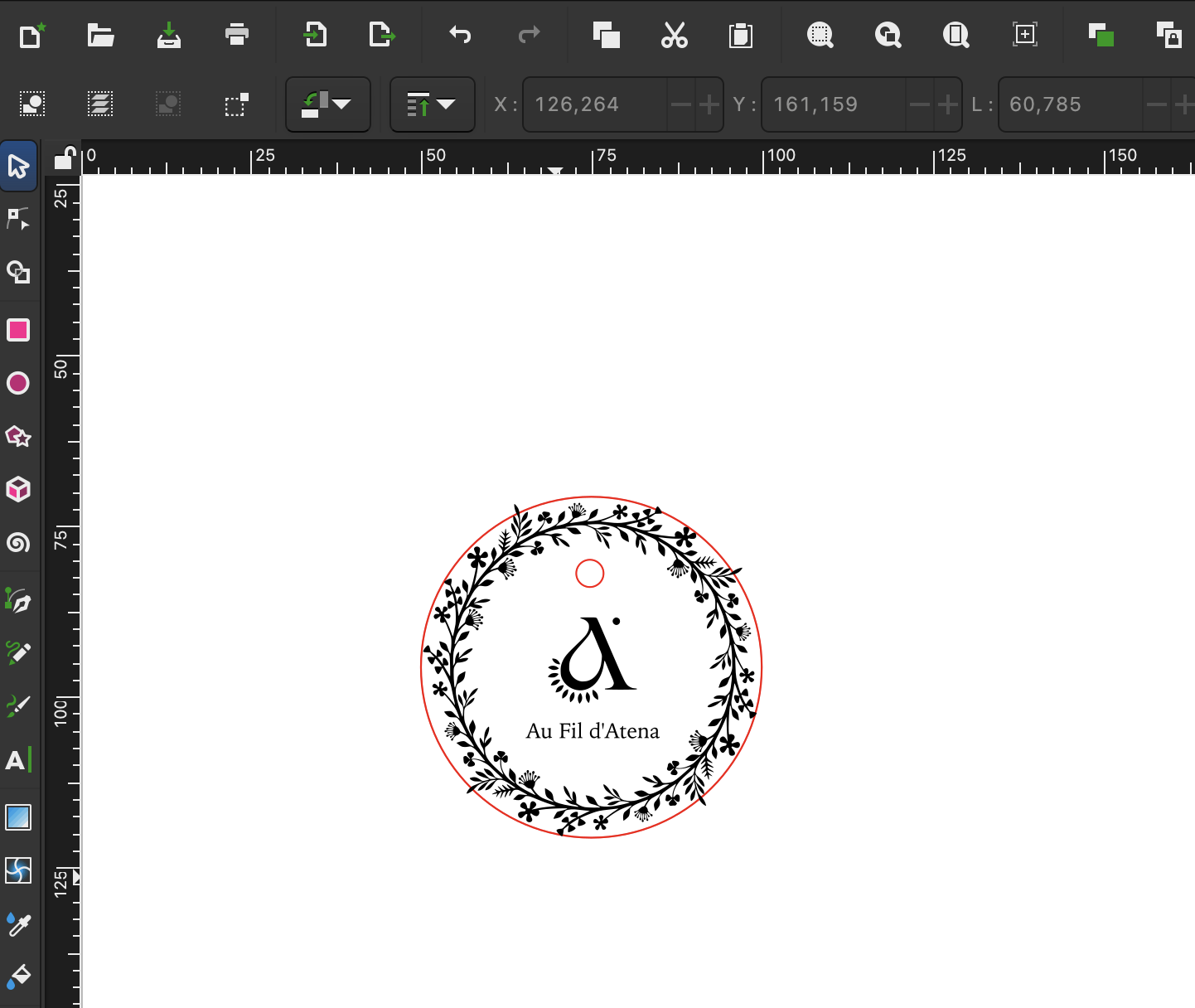 Nous avons réalisé la même procédure pour le logo « Au Fil d’Atena », créé précédemment dans le cadre de notre projet d’entreprise, afin qu’il soit lui aussi utilisable pour la gravure.