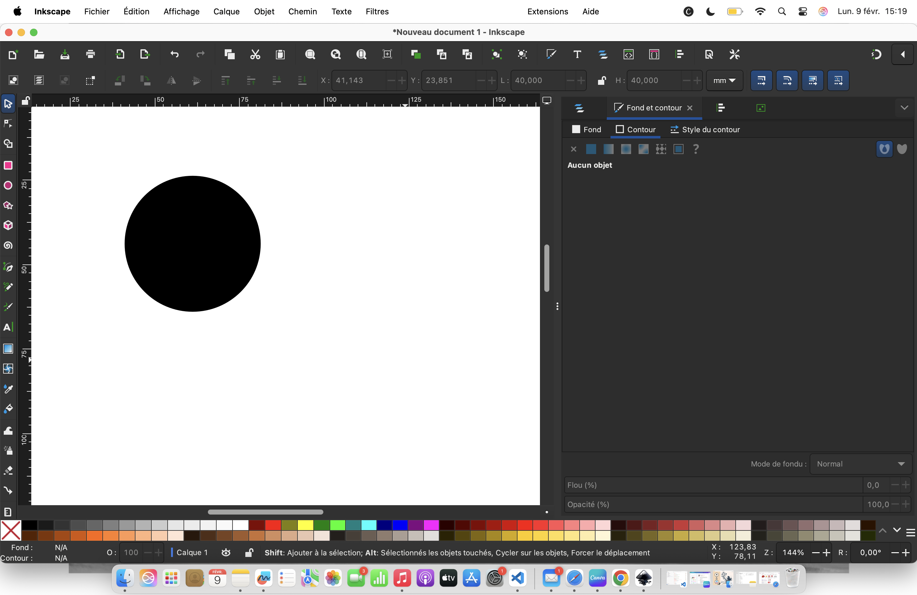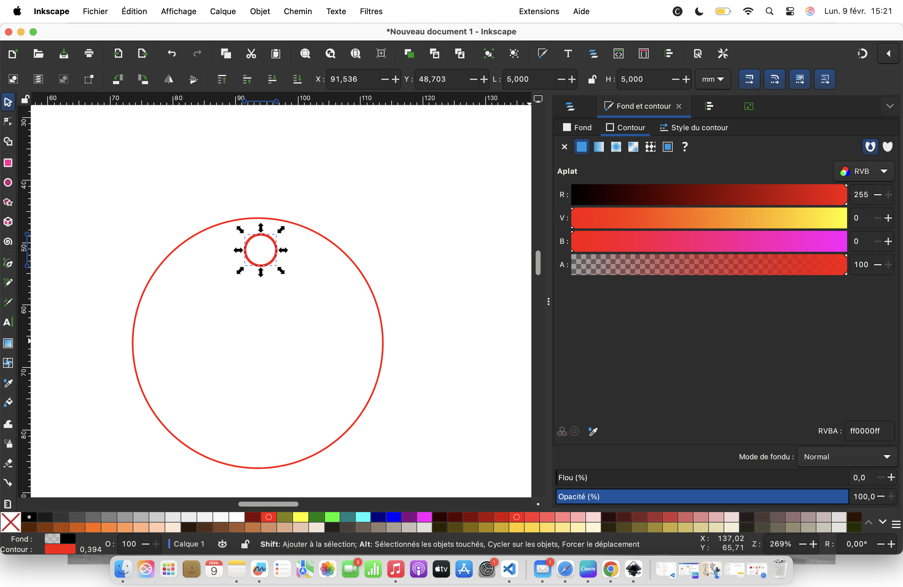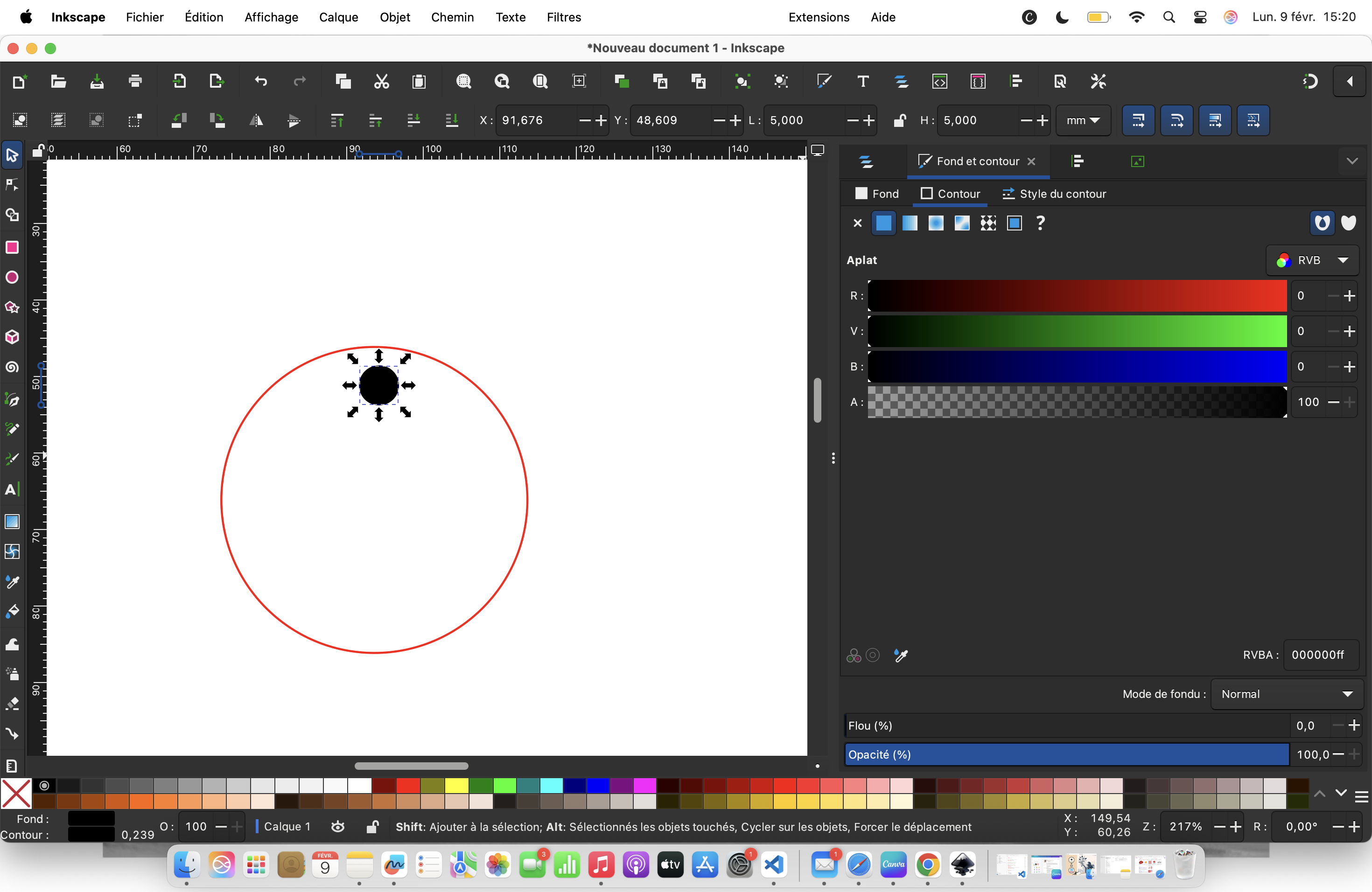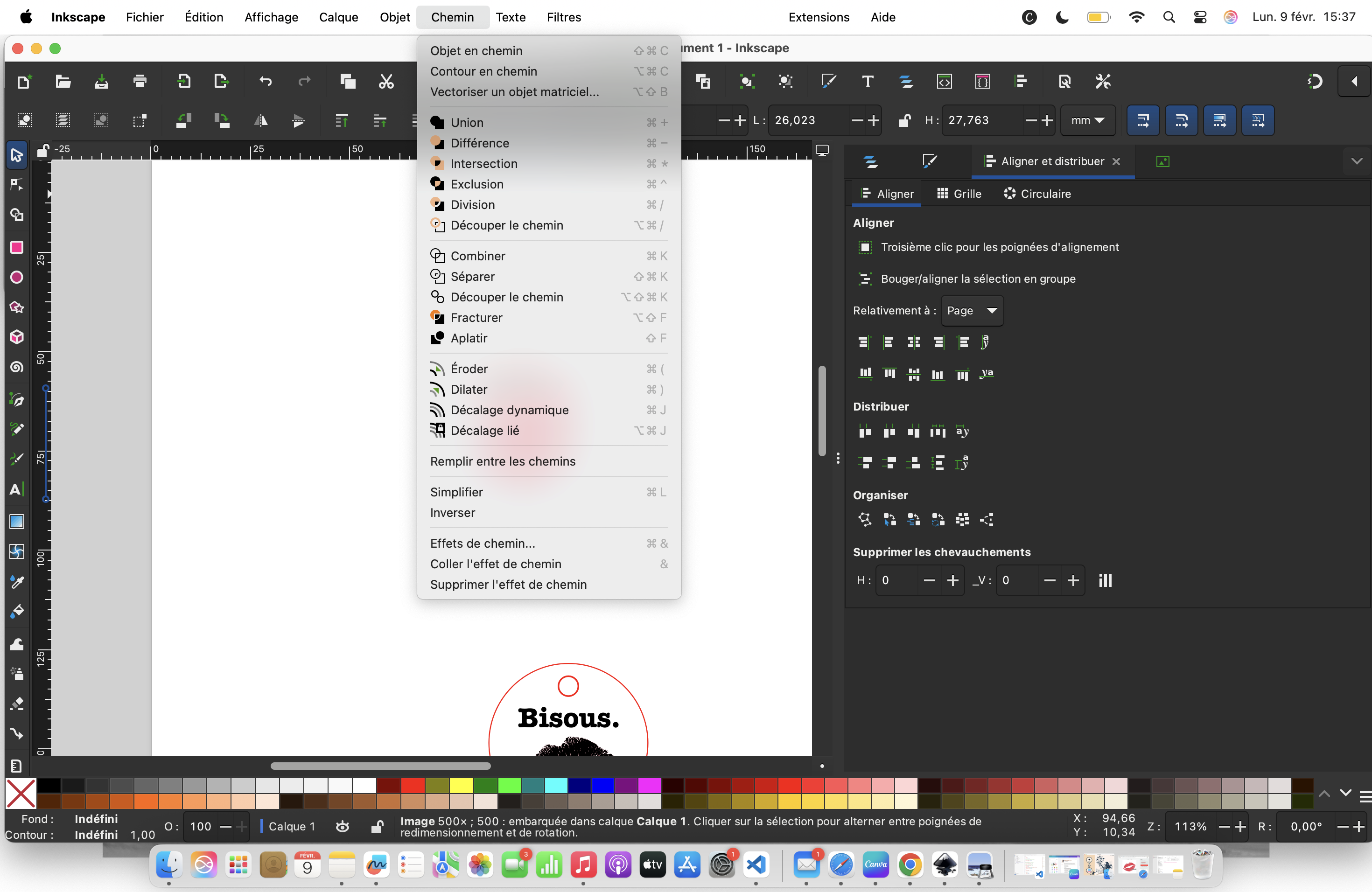 Nous avons centré le cercle sur la feuille via Objet --> Aligner --> distribuer.