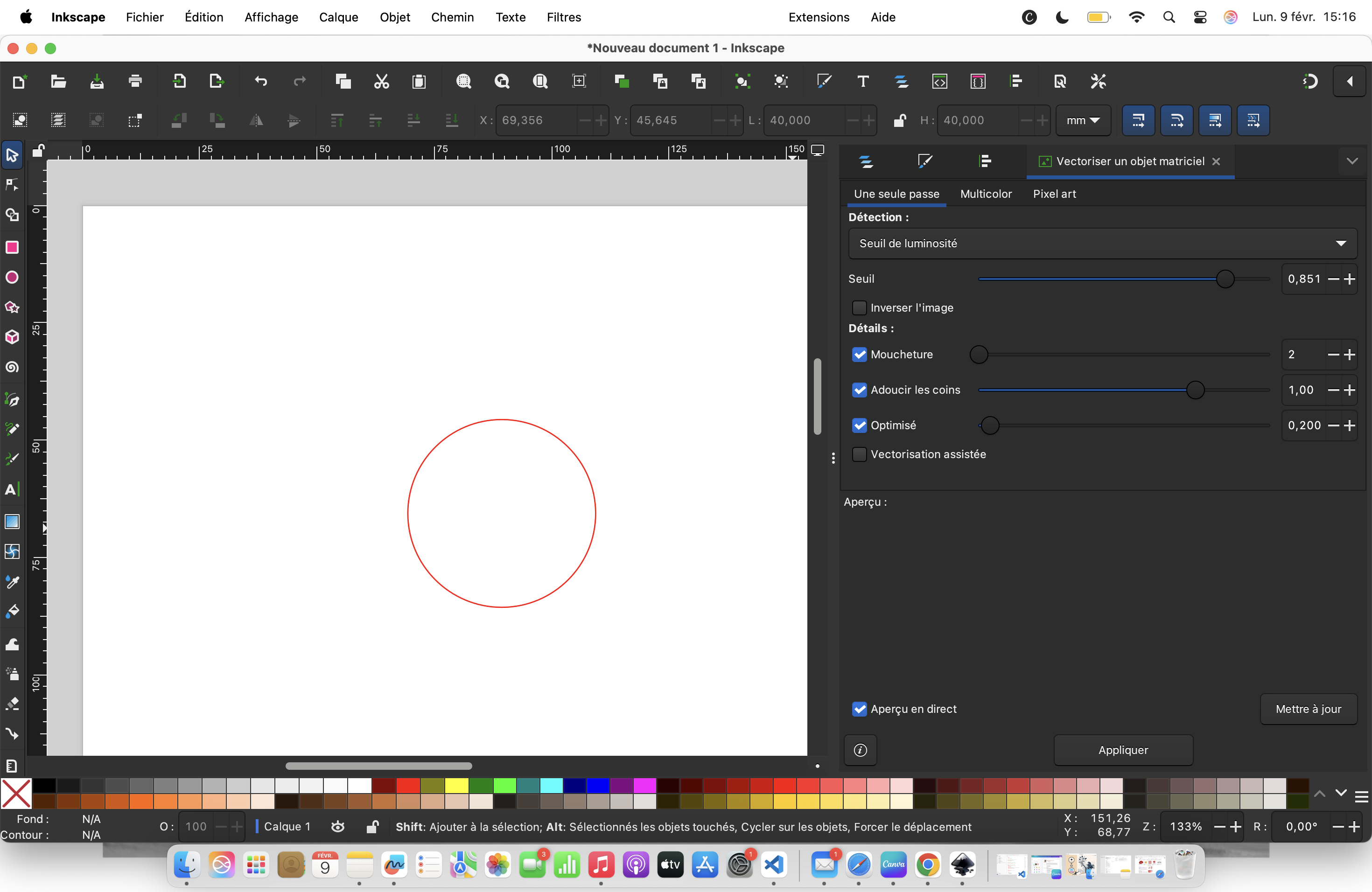 Accès au menu Chemin -- > Vectoriser un objet matriciel