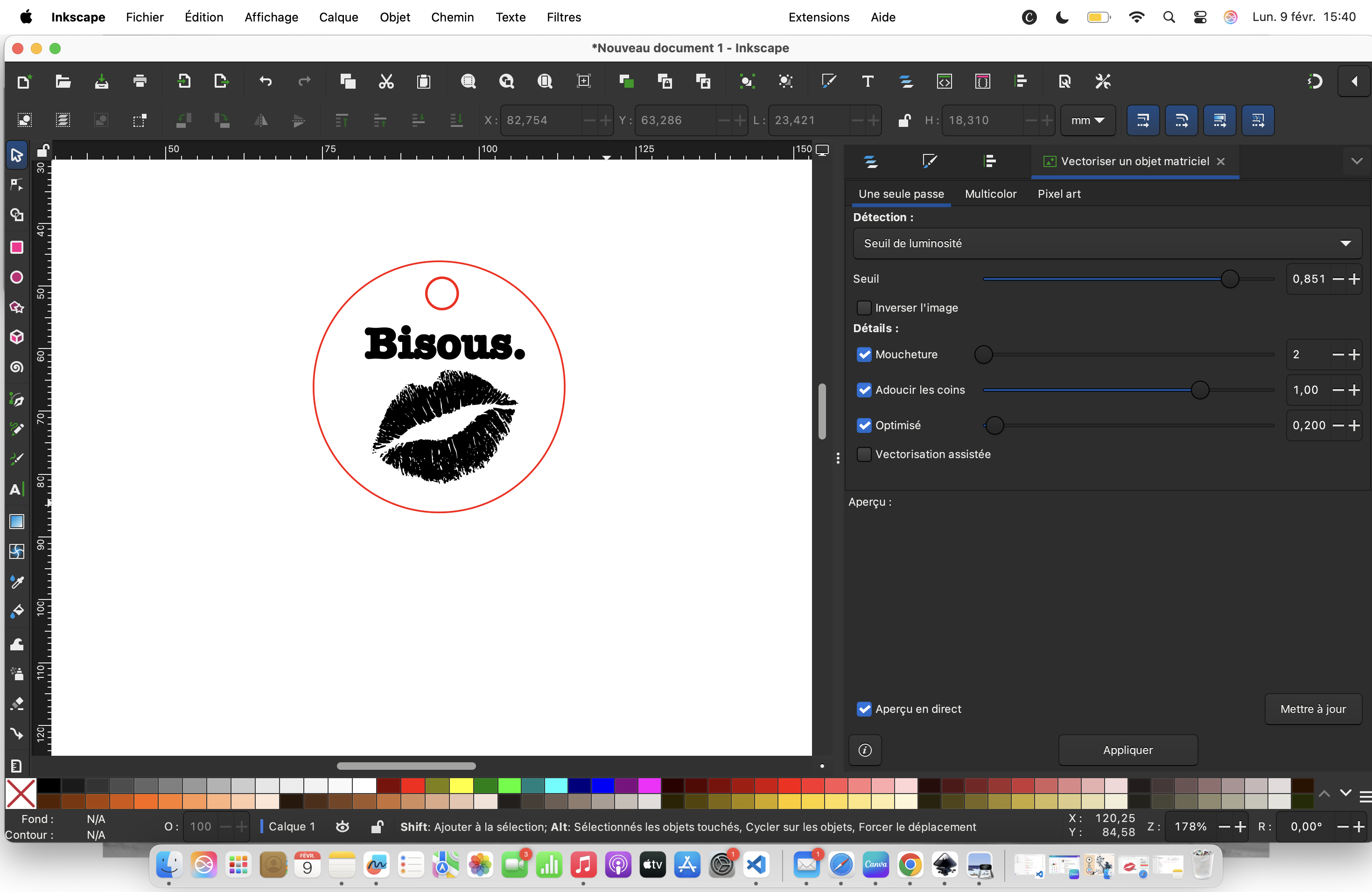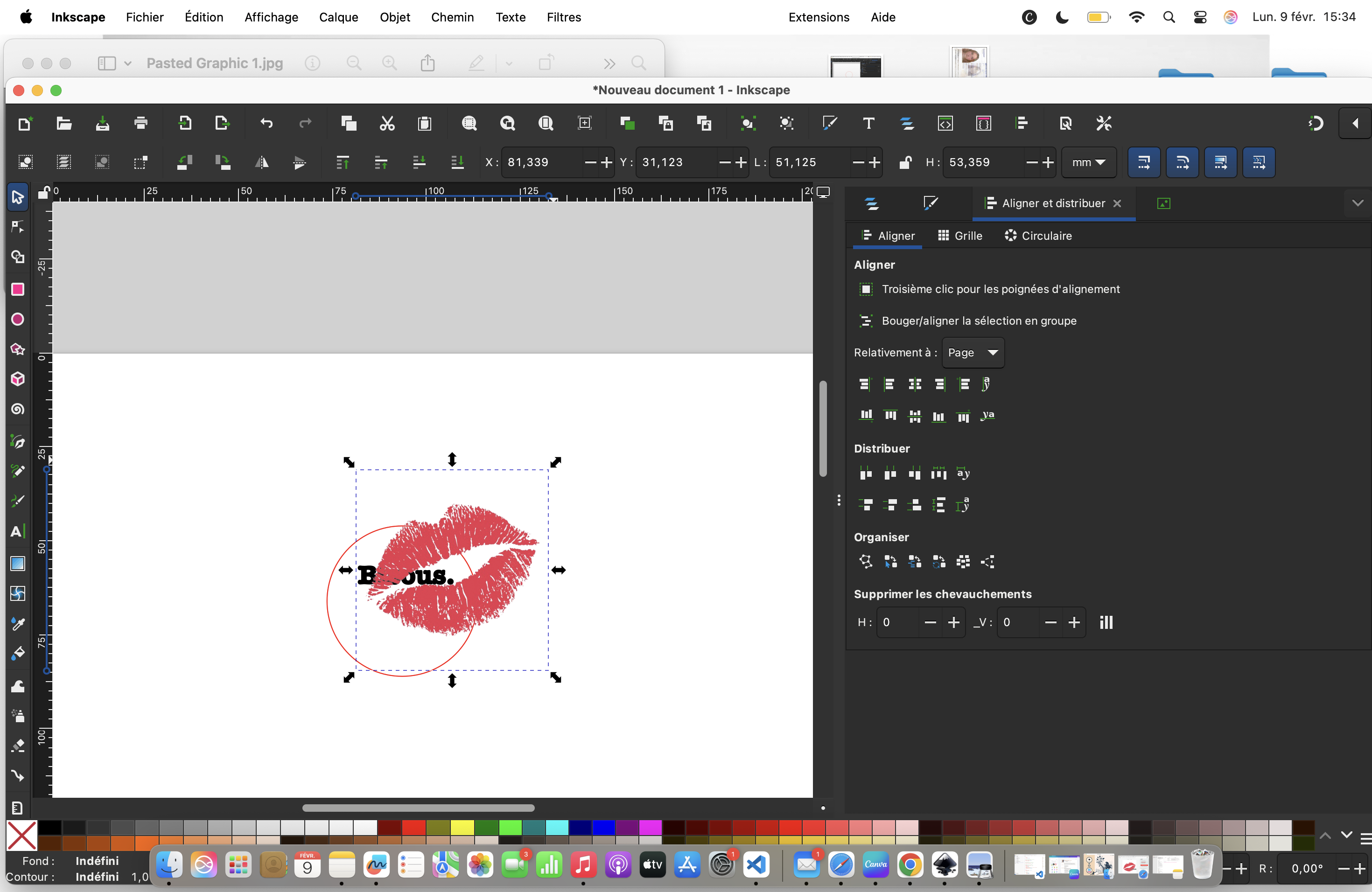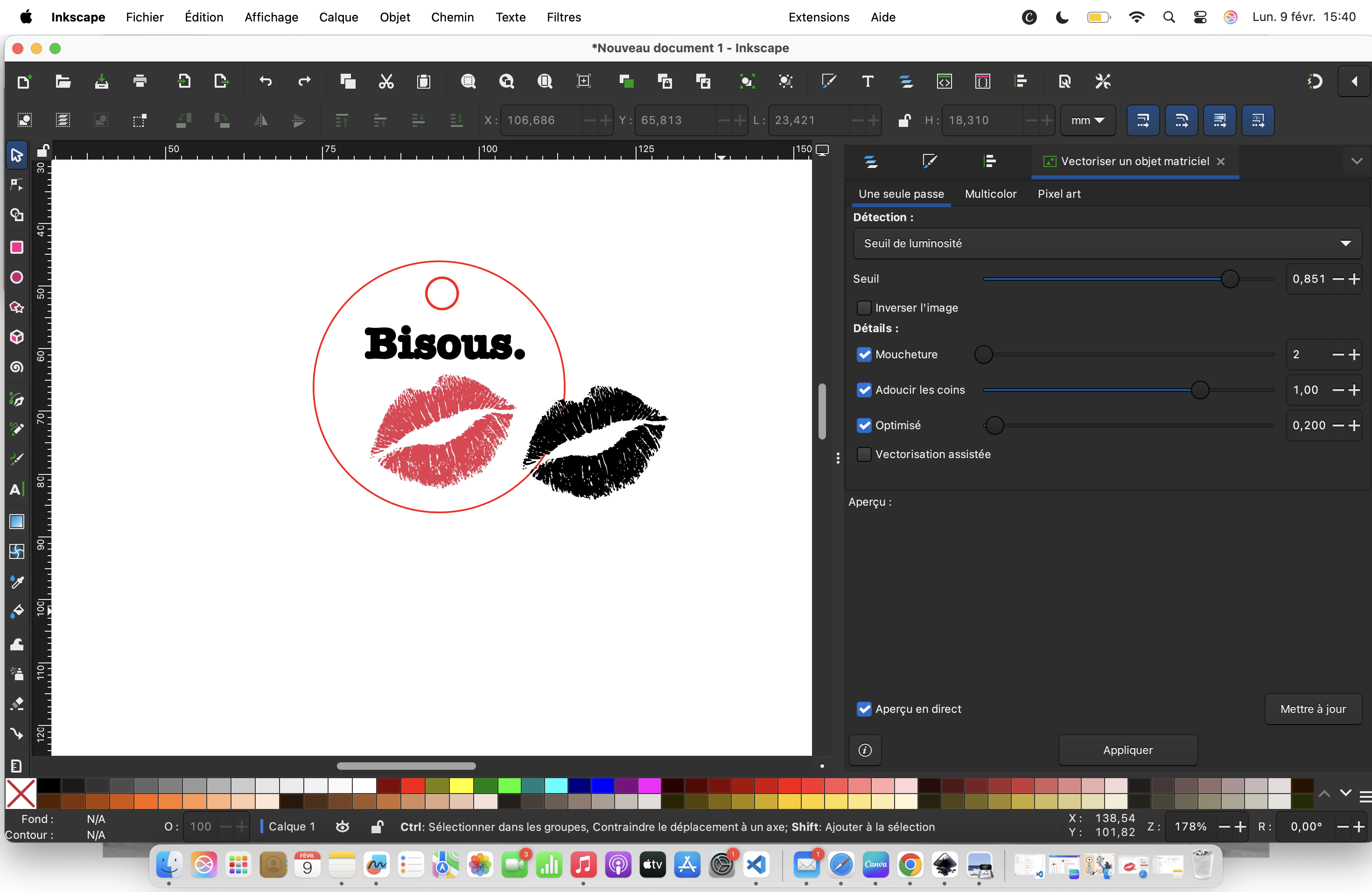 Une image de bisou a été recherchée sur le site iStock puis importée dans le document Inkscape.